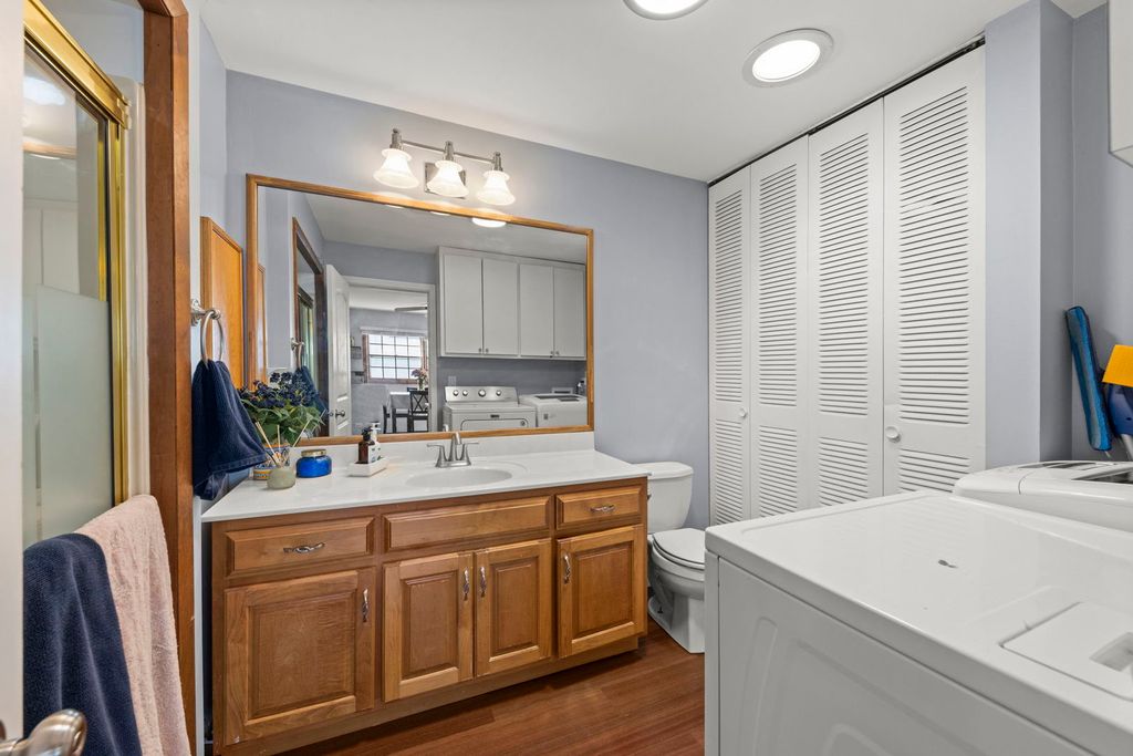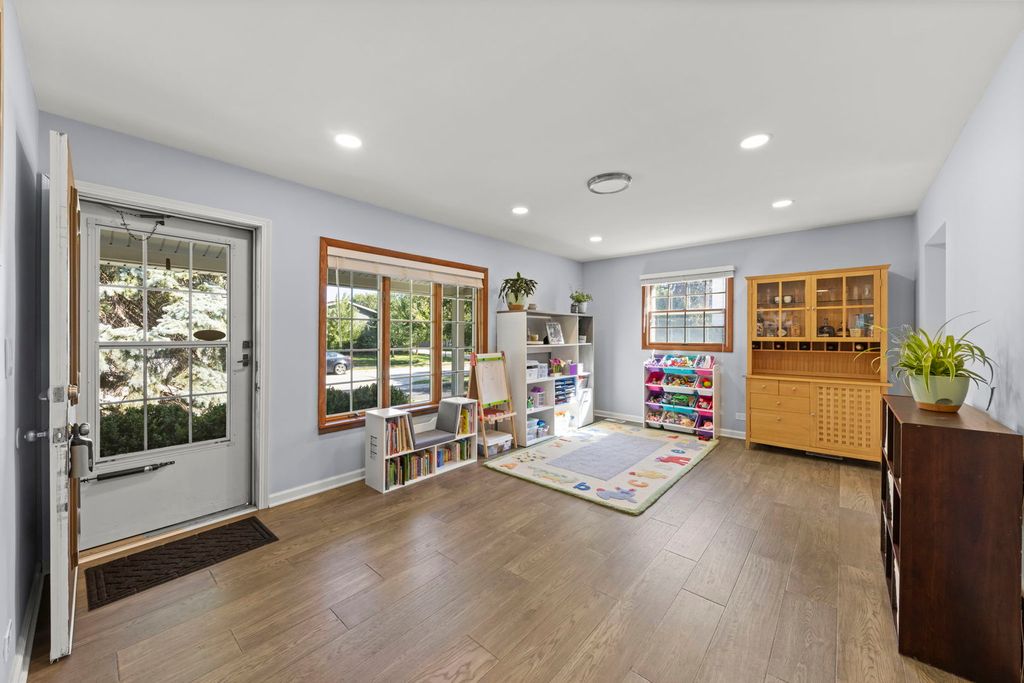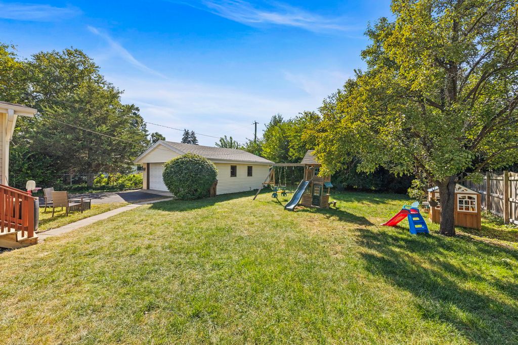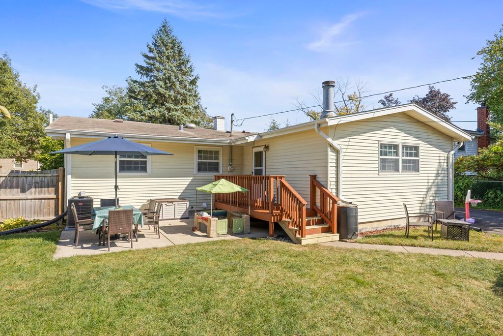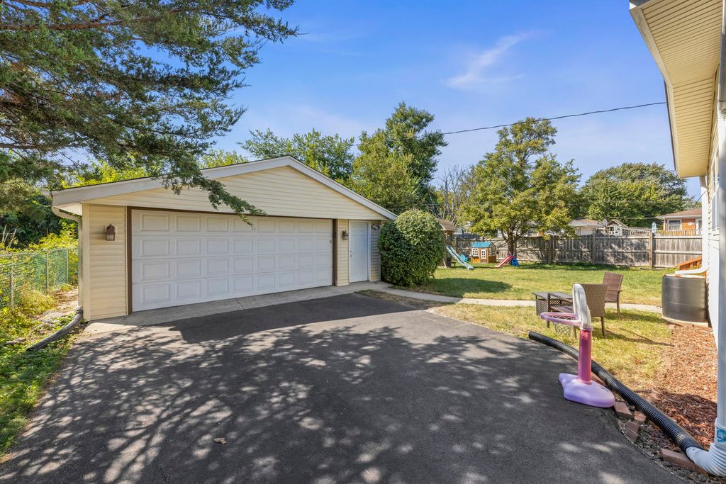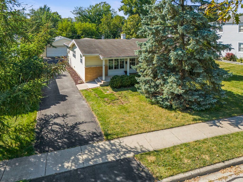 Welcome to this beautifully updated 3-bedroom, 2-bath ranch that perfectly blends charm, comfort, and modern single-level living! Step inside to a warm and inviting living room that flows seamlessly into the spacious open-concept kitchen, remodeled with 42-inch cabinets, Corian countertops, stainless steel appliances, and a coffee bar area. The kitchen also offers space for a dining table and opens directly to the oversized family room-ideal for gatherings and everyday living. You'll love the upgraded luxury engineered flooring throughout! The family room features abundant natural light, a cozy fireplace, and direct access to the backyard. Outdoors, enjoy a patio, play set, and plenty of space to entertain, along with a convenient two-car detached garage. Located on a quiet, tree-lined street, yet just minutes from everyday conveniences, this home offers the best of both worlds. You'll love being close to Target, the train station, the Prairie Path, More Brewing, Tribute Restaurant & Bar, and the Salt Creek Trail. Don't miss the chance to make this move-in ready home yours!