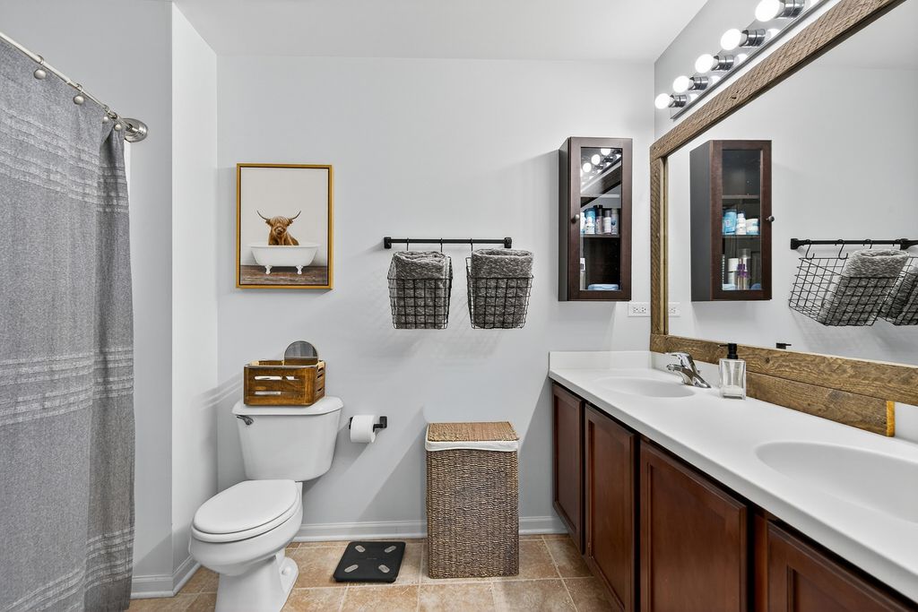 Welcome to this rarely available Amherst model in desirable West Point Gardens! This stunning home features a grand two-story foyer, a separate dining room, and an open-concept family room seamlessly flowing into a gourmet kitchen. The spacious kitchen boasts granite countertops and stainless steel appliances, complemented by 9' ceilings on the first floor. Upstairs, the primary suite offers a tray ceiling, new lighting, a generous closet, and an en-suite bath with a dual vanity. Two additional bedrooms and a second full bath complete the upper level. Convenience is key with a first-floor laundry room and a full basement. The beautifully finished basement provides an open ceiling concept with crown molding, a full bathroom, a bedroom, an office, a recreation room, and abundant storage. Throughout the home, you'll find charming 6-panel doors. Enjoy outdoor living, and relax in your private, professionally landscaped, fenced-in garden with a patio. The property includes an oversized two-car garage with a covered breezeway. This home features 3 bedrooms and 2 1/2 baths, and is ideally located directly across the street from Meier Park, close to shopping, and restaurants. Schedule your showing today before this one gets away!