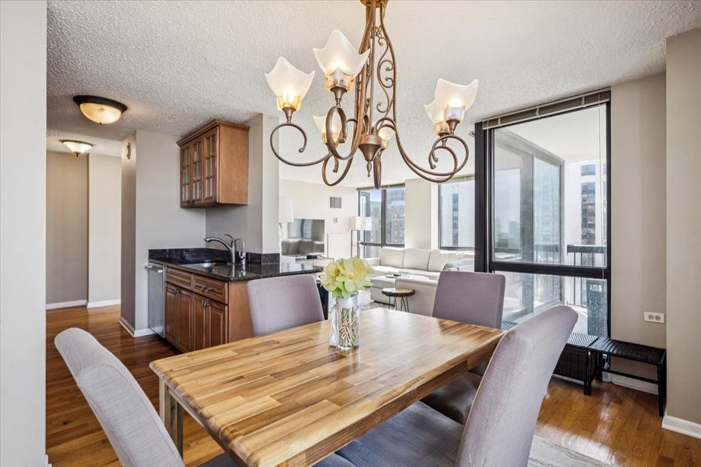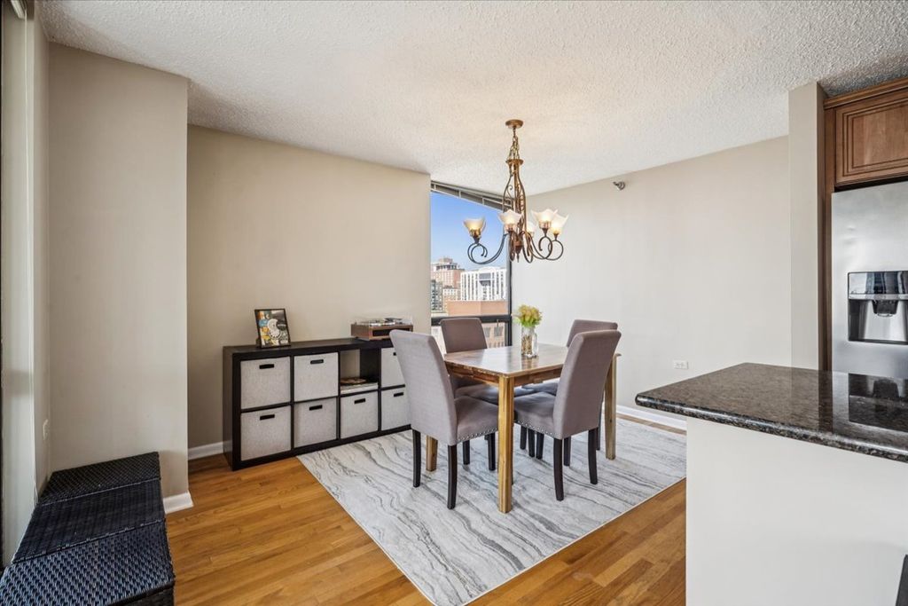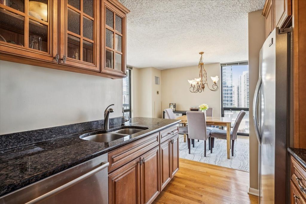 Beautifully updated northwest corner 2-bed, 2-bath residence offering 1,260 square feet of refined living space. Floor-to-ceiling windows flood the home with natural light and open to a spacious corner balcony, perfect for indoor-outdoor living and entertaining. The home showcases hardwood flooring throughout the main living areas, a custom maple kitchen with stainless steel appliances and built-in microwave, and thoughtfully designed bathrooms with matching cabinetry. Generously sized bedrooms and abundant closet space provide comfort and functionality. (In-unit laundry can be installed-an option not available in every unit in the building.) The Elm offers an impressive suite of amenities: outdoor pool and sundeck with grills, fitness center, party room, bike storage, dry cleaners, and 24-hour door staff. Garage parking is included in the price. Located in the heart of the Gold Coast, just steps to parks, shopping, renowned dining, nightlife, and public transit-including the Division Red Line stop.