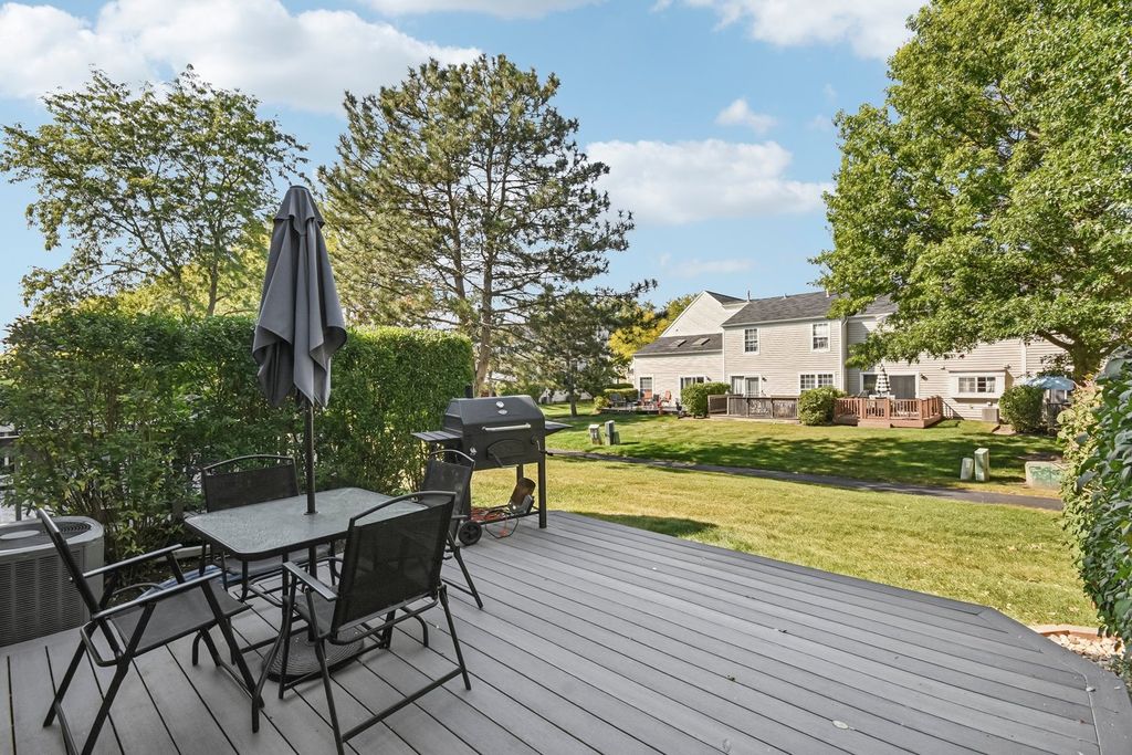 Welcome to this beautifully updated 3-bedroom townhouse with modern finishes and thoughtful design. The first floor features hard-surface flooring throughout, including laminate flooring in the Family Room and Foyer along with tile in the Kitchen and Powder Room. The kitchen offers granite-look countertops and stainless steel appliances, with a bright eating area. The family room flows from the foyer with light laminate floors and ample wall space for flexible layouts. Powder room is updated with new vanity, mirror, and lighting. Step outside to the low-maintenance Trex deck, backing to a neighborhood walking path leading to parks, playgrounds, or nature fields. The deep heated garage provides extra storage. Upstairs, enjoy a laundry closet with matching front-load washer and dryer. The primary bedroom has southern exposure, a large wall closet, and shared access to the hallway bathroom with an oversized soaking tub, ample cabinets, and counter space. Two additional bedrooms with northern exposure feature wall-to-wall closets and overlook walking paths and mature trees, ideal for kids, guests, office, or media space. Fresh paint and updated electrical throughout. Smart home features include Ring doorbell, Nest security and fire alarm system, and Honeywell thermostat for comfort and peace of mind. Move-in ready and perfectly located-schedule your showing today!