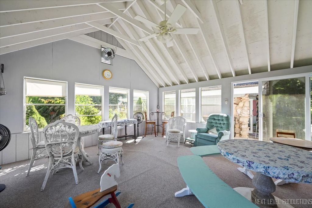 Opportunity knocks! Here's your chance to own a piece of history along with 4.75 acres of land along the Fox River! The main house was originally a log cabin moved here in the late 1940's! It now has two additions that features 3 (possibly 4 or 5) bedrooms - first floor primary bedroom! One full bath and three half baths, two lofts, plus a light and bright dining/living room combination! The original cabin is now used as the family room - absolutely GORGEOUS woodwork and a huge stone fireplace! Kitchen with white cabinets and granite countertops! All new windows in 2023! Two detached two car garages! One of the garages is completely finished - drywall, heated/air-conditioned plus even has a half bath! Above it is a one bedroom/one bathroom apartment! Attached is a huge screened in porch perfect for entertaining/watching the wildlife! This property has sooo many possibilities! Awesome!! This is an estate sale and will be sold as-is.
