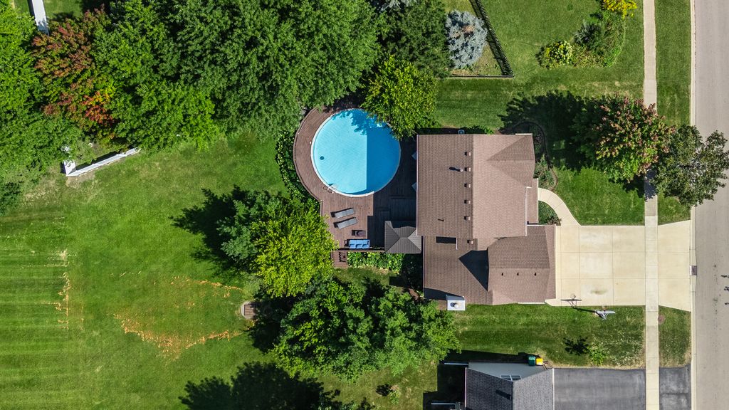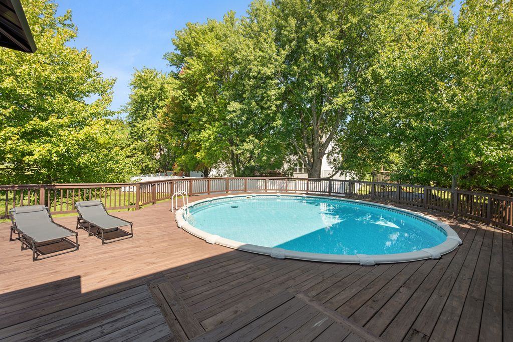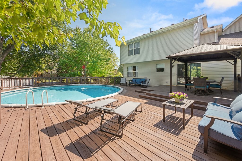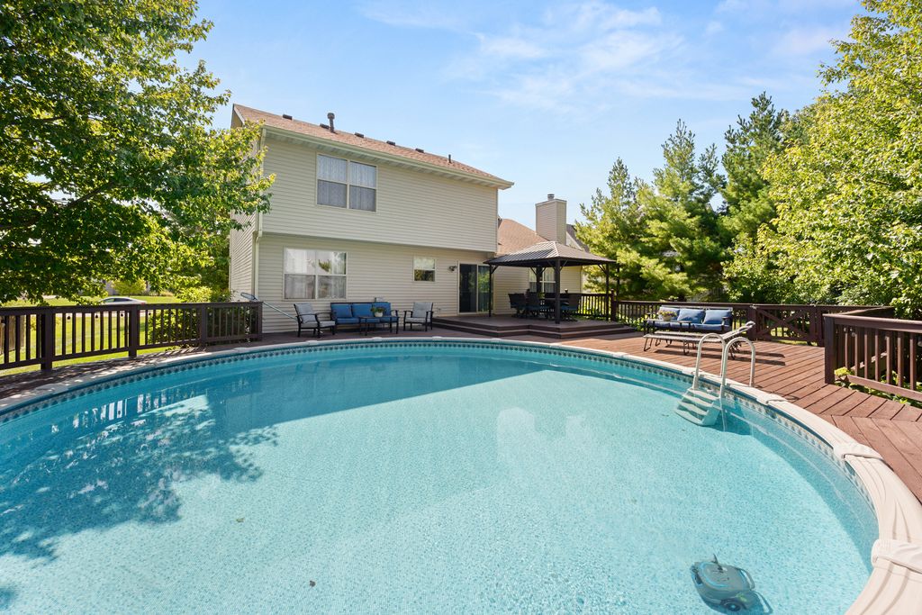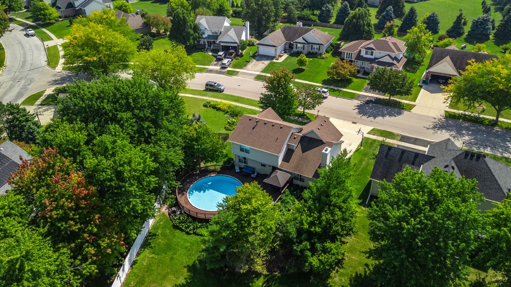 Step onto the welcoming covered front porch of this beautifully maintained 4-bedroom, 3-bath two-story home, and you'll instantly feel at ease. Every corner of this residence is designed for comfort, connection, and lasting memories. Inside, the foyer with a good-sized closet, invites you into a bright and spacious floor plan. Through the French doors, you will find the living room, which through another set of French doors flows into a formal dining room. The completely remodeled kitchen offers a sunlit eating space, Quartz counters, pendant lighting, abundant cabinetry and counter space with an island and opens to the family room, complete with a cozy wood-burning fireplace and vaulted ceiling. What a perfect place to settle in for the evening! The sliding glass door leads to your private backyard retreat, featuring a spacious deck and above-ground pool, perfect for summer gatherings and quiet evening relaxation. First floor half bath and two-car attached garage are a plus! Upstairs, four generously sized bedrooms provide room for everyone, including a primary suite with its own private bath and closet. The second full bath with tub/shower completes this level. Downstairs, the finished basement expands your living space with a second family room, recreation room, full bath, and a laundry room with sink and closet, ideal for both daily living and entertaining. Set in a convenient location with close proximity to I-88 access, restaurants, shopping, schools, medical facilities, and walking/biking paths, this home combines suburban charm with everyday convenience. New hot water heater (2023), new pool filter and washer and dryer (2022), new dishwasher (2021), all other new appliances and sliding door and first floor light fixtures (2017), widened and made driveway concrete from asphalt and new concrete sidewalk (approx. 2016), new roof (2015 or 2016), two sets of French doors, and all new first floor doors and trim (2014), deck and pool (approx. 2012). Meticulously cared for and thoughtfully updated, it's truly a place where you can settle in and thrive. HERE YOU WILL FIND A HOME THAT WELCOMES YOU, A LIFESTYLE THAT INSPIRES YOU - THIS IS WHERE YOUR NEXT CHAPTER BEGINS!