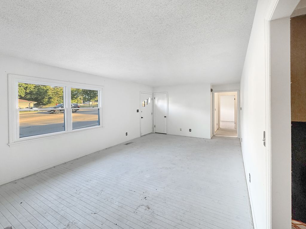 This 3-bedroom, 1-bath home offers great potential with many major updates already completed. Within the past 5 years, the roof, gutters, deck boards, and vinyl windows have all been replaced. A spacious 2.5-car garage with 220v provides plenty of room for projects or storage, while the large backyard with newly planted grass and a 15' x 38' deck is perfect for outdoor living. Inside, you'll find central A/C, a wood-burning fireplace, and a convenient washer/dryer closet with hookups in the kitchen. The home does need new flooring and a finished bathroom-giving you the opportunity to add your own style and value while making it truly yours.