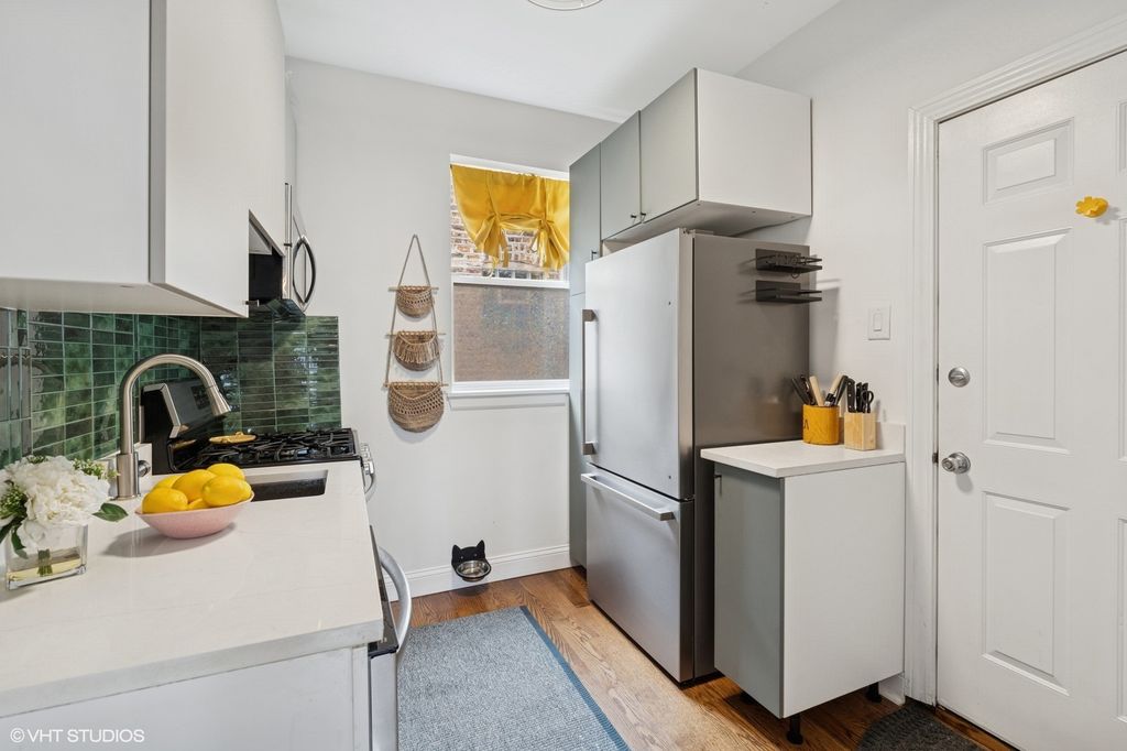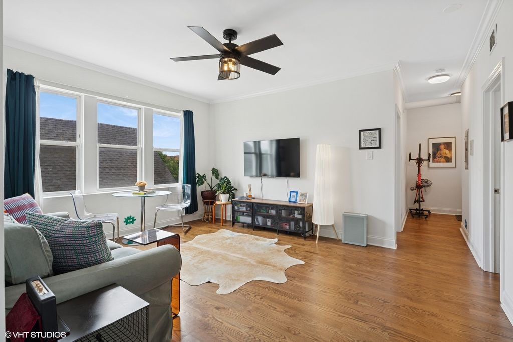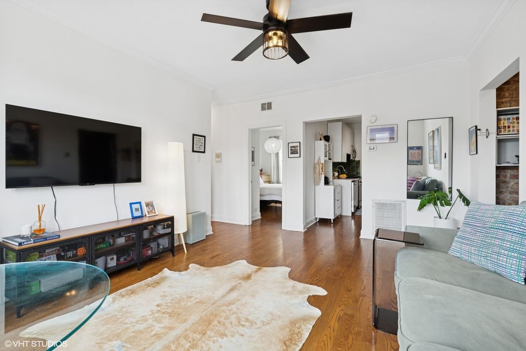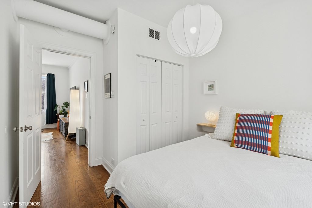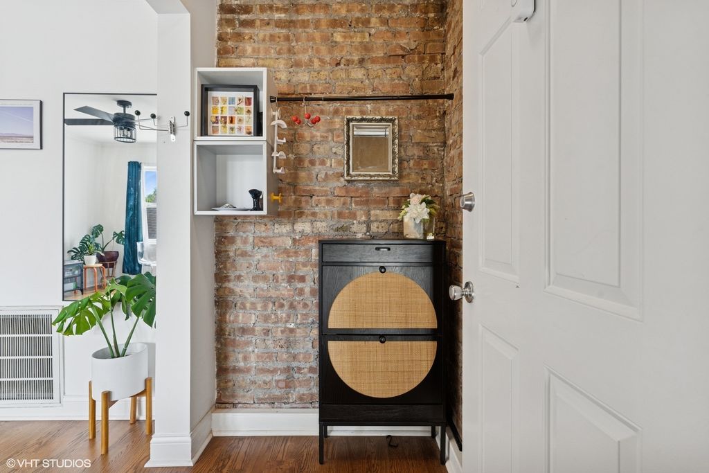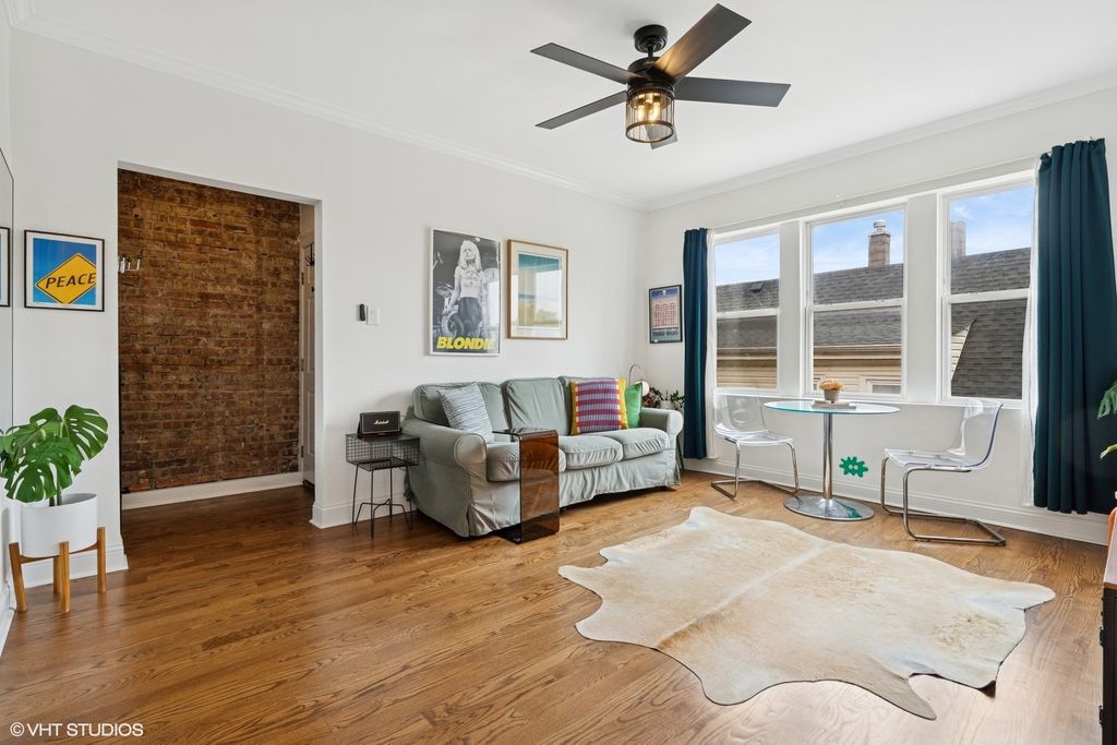 Sun-drenched and chic top-floor condo in the heart of hot Logan Square. This recently renovated home blends modern finishes with vintage charm, featuring soaring ceilings, hardwood floors, central AC, and striking exposed brick. The stylish kitchen is outfitted with sleek quartz countertops and a rare full-size pantry. The open-concept layout offers a spacious living area, two well-proportioned bedrooms, and an updated bathroom with bonus space for linen shelving or extra storage. Additional perks include in-unit laundry and thoughtful updates throughout. All of this in one of Chicago's most dynamic neighborhoods! Enjoy easy, permit-free street parking and a prime location just steps from the 606 Trail, Palmer Square, top-rated restaurants and bars like Best Intentions, Scofflaw, Park and Field and multiple public transit options. Professionally managed, pet-friendly, and investor-friendly building. Short term rentals are allowed.