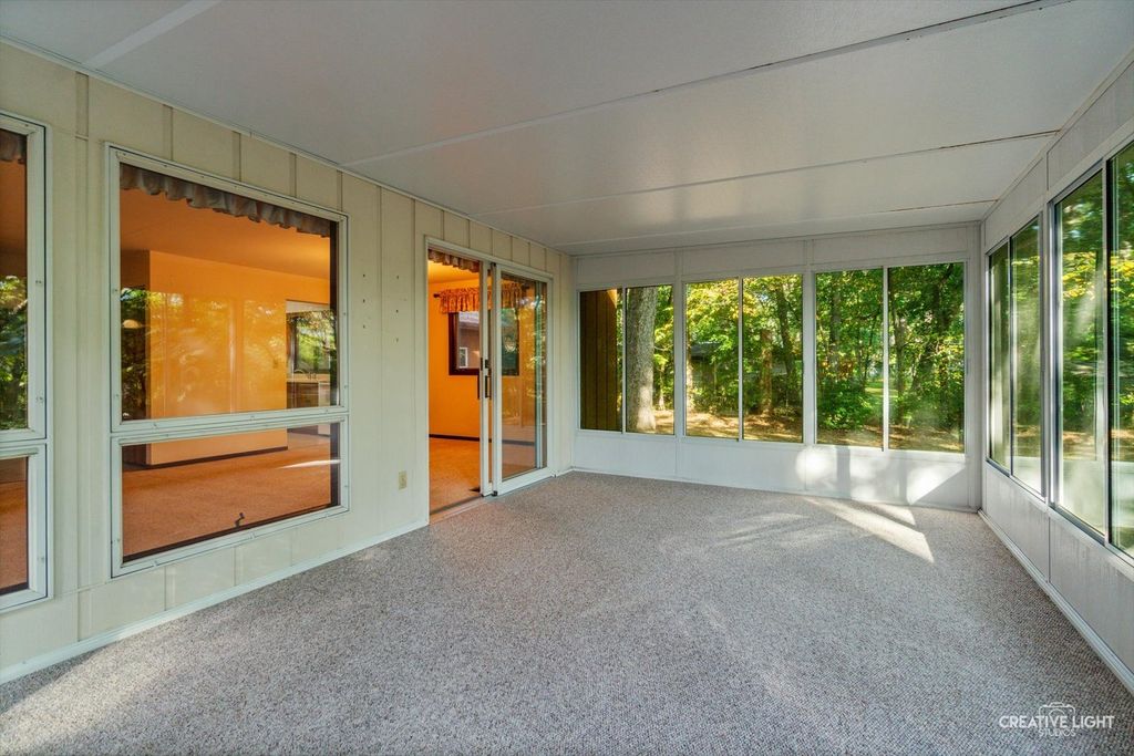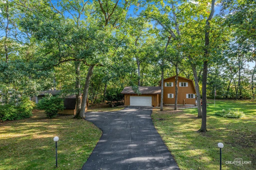 Discover the charm of this unique 1970 Barn-Style home, perfectly tucked away in a quiet unincorporated Plano subdivision on a peaceful one-acre wooded lot-NO HOA! Offering 1,792 sq. ft. of living space, this single-owner property has been lovingly maintained and is ready for its next chapter. Inside, you'll enjoy a spacious living and dining room, a cozy den, and an eat-in kitchen featuring Corian countertops, a pantry, and all appliances included. The bright Florida Sunroom-built on solid concrete footings-provides year-round enjoyment, while the composite side deck is ideal for relaxing among the trees. Upstairs, the main bedroom boasts his-and-hers walk-in closets and a private balcony overlooking the backyard, creating a true retreat. Two additional bedrooms and a full bath provide comfort and flexibility for family, guests, or a home office. Practical updates include a 2023 Gas Forced Air Furnace, 2022 House Roof/Gutters, 2023 Garage Roof, water filtration system, natural gas, and the convenience of all appliances staying with the home. With character, care, and a serene setting, this one-of-a-kind property is the perfect place to write your next chapter.