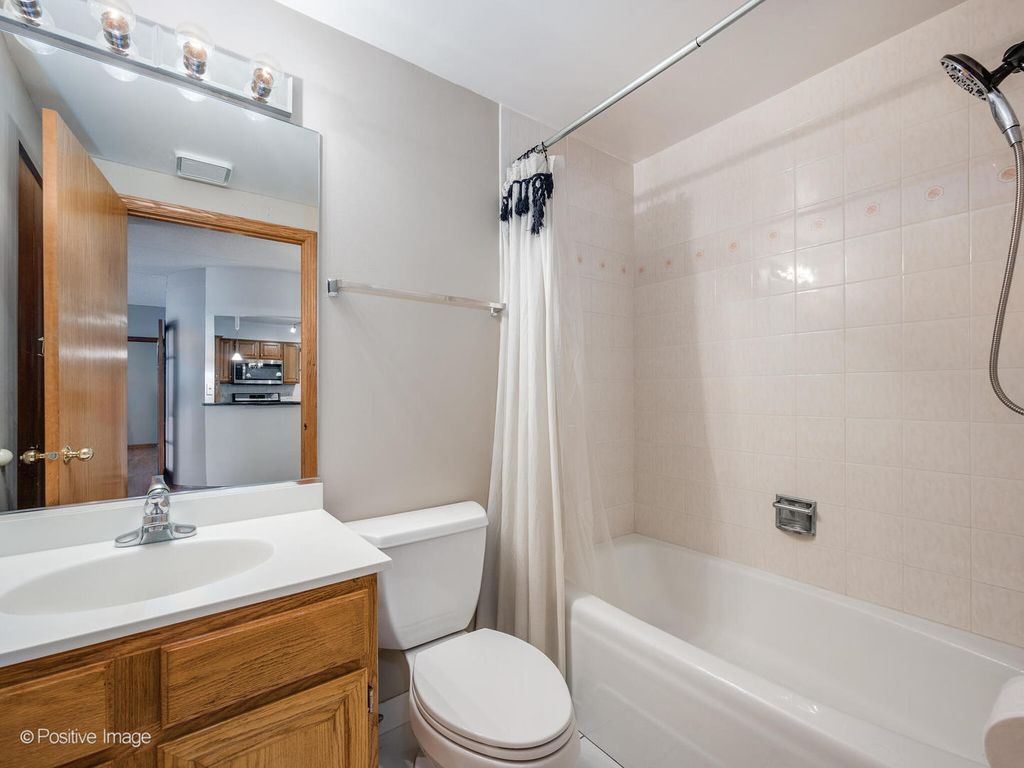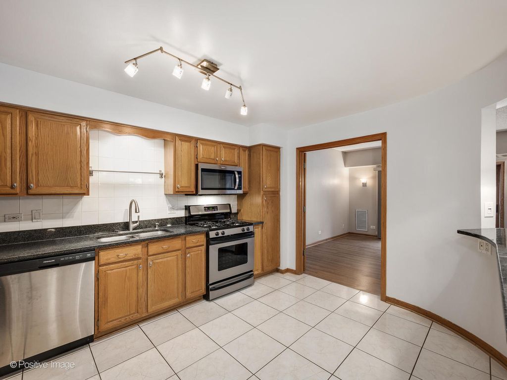 Experience comfortable living in this well-maintained 2-bedroom, 2-bathroom condo in the desirable Courtyards of Harwood Heights. This nicely appointed residence features updated design with quality finishes throughout. The updated kitchen includes stainless steel appliances with new microwave and dishwasher (2024), granite countertops, and French doors opening to the spacious living room - great for relaxing and entertaining. The roomy master bedroom offers a walk-in closet and full ensuite with stand-up shower, separate tub, and attractive gray tile. Enjoy your private west-facing balcony with evening views. In-unit laundry and garage parking provide added convenience. The location offers good access to shopping, dining, and public transportation. This well-appointed home combines comfort and practicality in a desirable community.