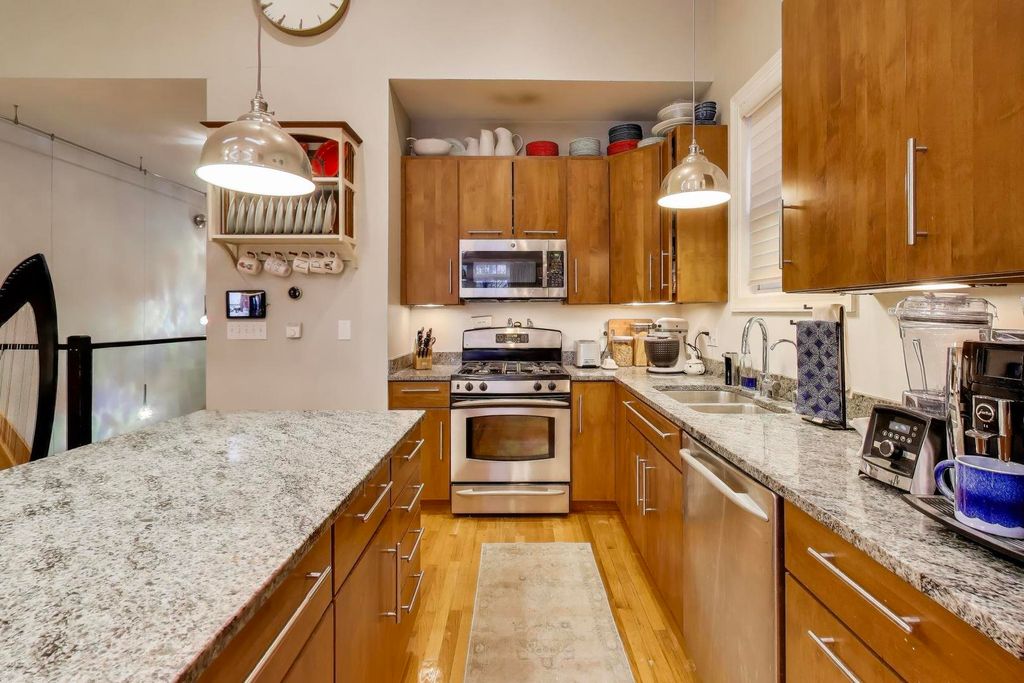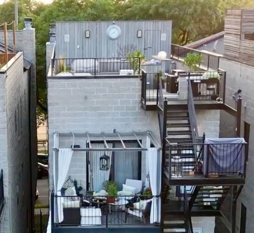 Two bedroom, two bath penthouse unit with two private outdoor spaces, overlooking the Hamlin Park. Step inside to a welcoming foyer featuring a striking glass staircase accented by custom lighting. You will love how the blue glass cast a gorgeous rainbow effect along the walls for a truly unique touch. Enjoy the hardwood flooring in the living areas, carpeted bedrooms, and marble bathroom floors. The living room features a wood-burning fireplace, while the kitchen boasts granite countertops, an counter height island with sitting area, stainless steel appliances, and raised-panel custom cabinetry with crown molding. The cabinetry is crafted by Omega with 42" uppers, outfitted with premium Blum hardware and Hafele handles. One of the standout features of this home is the exceptional outdoor living spaces. The guest bedroom offers direct access to a private porch with pergola, creating a perfect escape for coffee, quiet reading, or fresh evening air. A few steps up to the home's private rooftop deck, completely rebuilt just two summers ago with sink, firepit, storage sheds, and build in seating areas. It truly feels like an extension of the living space. One garage parking space. Convenience abounds in this prime location! Short walk to Paulina Brown Line Station, Damen & Wellington Bus Stop, and minutes to Wrigley Field.
