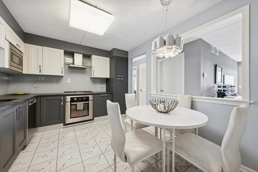 Love where you live, Love Norridge! Welcome home to this beautiful and modern 2 bedroom, 2 bathroom condo, offering the perfect blend of luxury, style, comfort, and convenience. Located in sought after Norridge, this bright and spacious unit features an open-concept layout that maximizes both space and natural light. The gourmet kitchen boasts gorgeous matte soapstone countertops, custom backsplash, stainless steel appliances and custom cabinetry complete with built in pantry, and range hood perfect for your culinary needs. The large living area features marble tile flooring and opens to a large private balcony, perfect for morning coffee or evening relaxation with stunning views. The generously-sized master suite includes a luxurious en-suite bathroom with modern vanity, stunning glass walk in shower, and plenty of closet space. The second bedroom is equally inviting, with easy access to the second beautiful full bathroom which includes a soaking tub. This unit is complete with in-unit laundry, 1 garage parking space, 1 additional storage space, and close to transportation, air port, grocery, shopping and entertainment. This turn-key unit is one you DON'T want to miss!