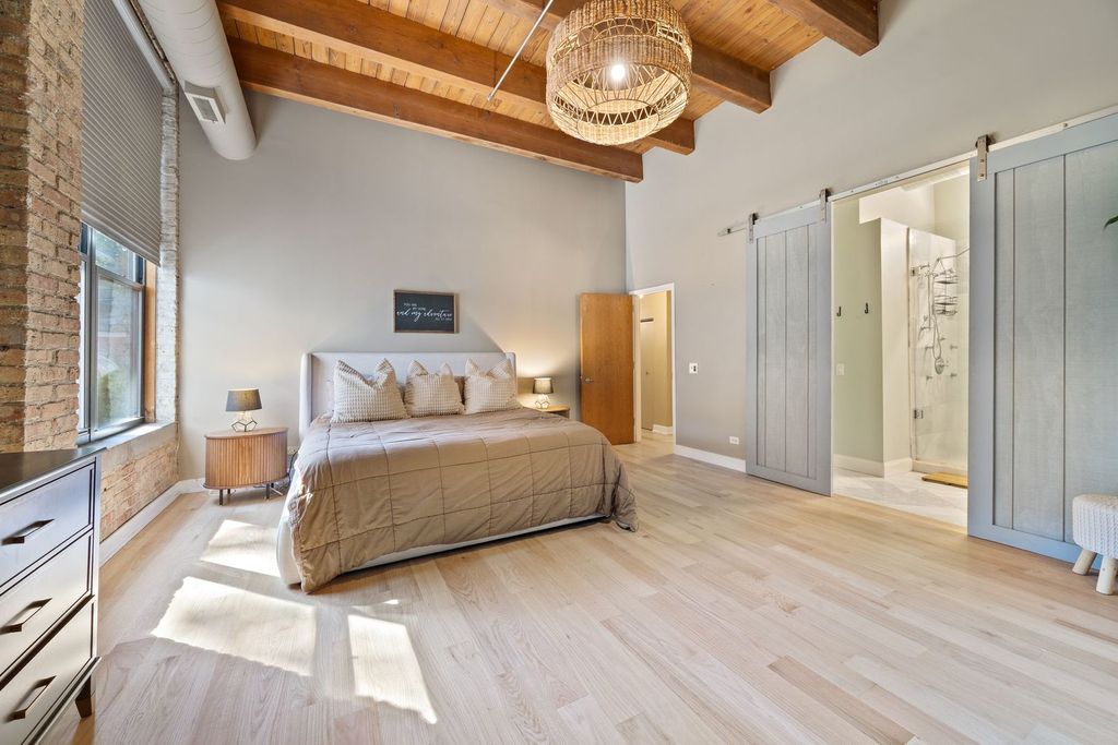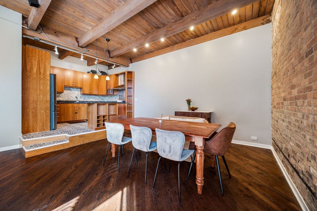 Tucked away in a quiet, gated courtyard, this 3 bed, 3.5 bath Lincoln Park triplex with brick and timber accents throughout delivers the space and character of a single-family home with the ease of condo living, all in the sought-after Oscar Mayer school district. Soaring ceilings, exposed brick, and timber beams create a dramatic backdrop in the main living area, where oversized windows flood the space with light. The open kitchen features chic new tile flooring, stainless steel appliances, and plenty of room to cook and gather, overlooking both the dining and living rooms anchored by a cozy fireplace with wood mantel and hearth. Two spacious bedrooms on the lower level include a serene primary suite with custom walk-in closet and spa-like bath with a double vanity and oversized shower, while the top level offers a flexible third bedroom or family room with its own full bath and rooftop deck access. Throughout, thoughtful updates like wool runner staircase carpeting and electronic window shades add comfort and style. With garage parking, a private rooftop retreat, and a location just steps from Trebes Park, the Armitage and Fullerton El stops, and some of the city's best dining and boutiques, this home brings together warmth, character, and convenience in the heart of Lincoln Park.