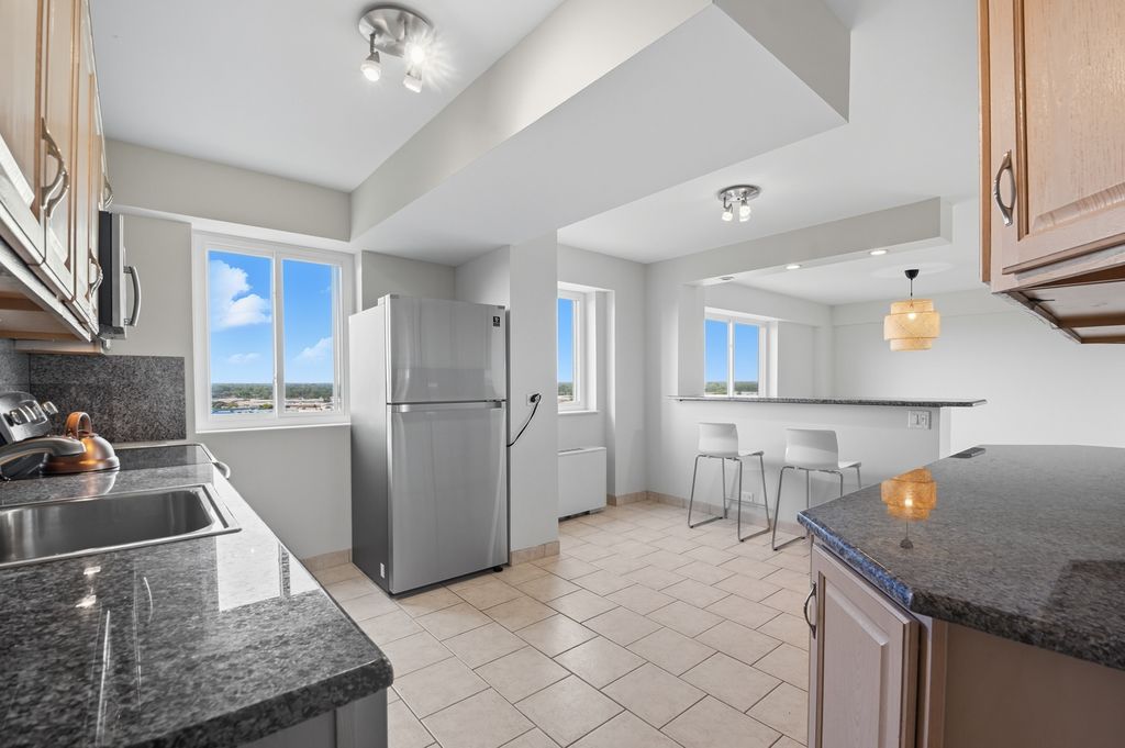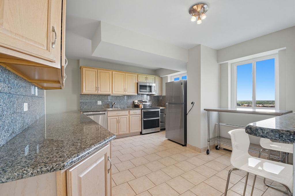 Welcome to your sunlit retreat in the sky. From the moment you enter the marble foyer, this condo exudes elegance and ease. The open living and dining areas feature rich hardwood floors, perfect for both everyday comfort and stylish entertaining. Brand new windows fill each room with light and frame unobstructed views that change with the seasons. Updated bathrooms add a touch of modern luxury. The spacious kitchen has granite countertops, and stainless steel appliances, including a brand new dishwasher. Generous hall closets, as well as ample bedroom closets. Primary bedroom has a walk-in closet. Top floor living ensures privacy, peace, and an unmatched sense of escape. A rare opportunity to own an elegant home in the coveted Winston Towers #5!