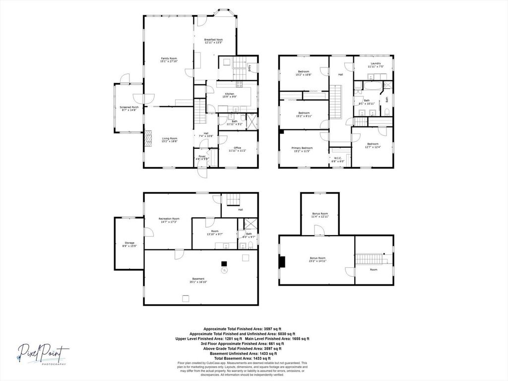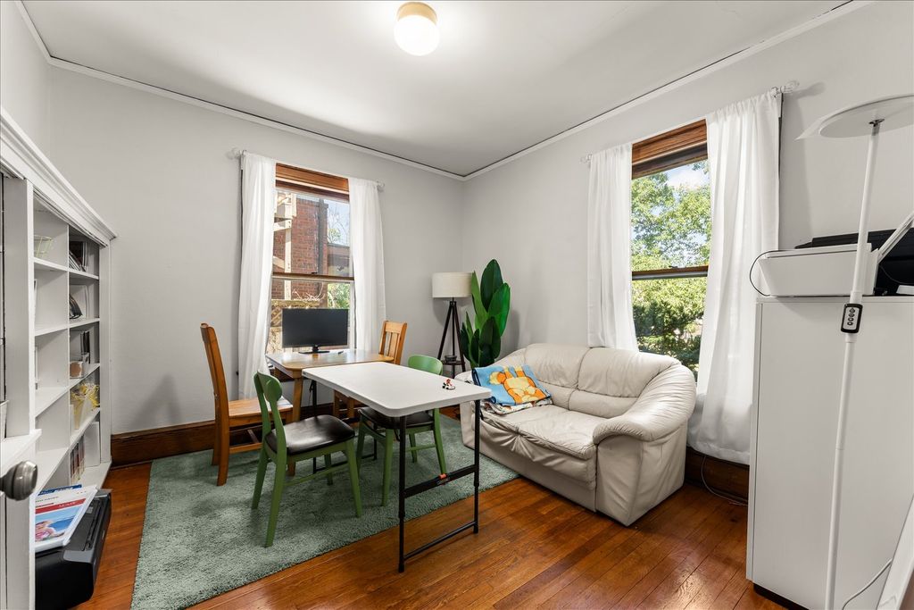 This spacious 4-bedroom, 2-story brick home offers over 3,500 square feet of beautifully finished living space, blending classic charm with modern functionality. An inviting foyer connects to a dedicated home office, a cozy living room with a brick fireplace, and an expansive family room with built-in buffet that seamlessly connects to a screened porch-perfect for indoor-outdoor entertaining. Upstairs, the primary bedroom boasts a walk-in closet, while three additional bedrooms, a shared full bath, and a convenient laundry area complete the second level. The third floor features two generous flex rooms ideal for a playroom, studio, or guest retreat. A full basement offers even more room to grow and abundant storage, making this home as practical as it is inviting. Versatile layout-ideal for continued student rental or quick conversion to family residence.