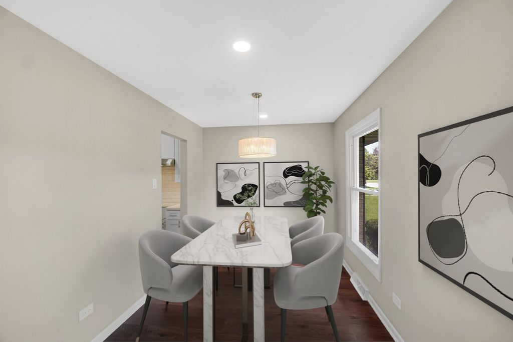 Welcome to 14112 Hoxie Avenue, an updated, move-in ready brick and frame split-level home that blends comfort, style, and affordability. This 3-bedroom, 2-bath beauty offers a refreshed living space on a generous 5,000 sq ft lot. Perfectly designed for first-time buyers or downsizers who crave turn-key ease, this home features freshly painted interiors, beautiful vinyl energy efficient windows, gleaming wood-style flooring, and recessed lighting throughout. The bright, modern kitchen is a true showstopper with crisp white shaker cabinets, quartz countertops, stylish subway tile backsplash, with newly installed stainless steel appliances and new vent hood. Adjacent, the dining area and spacious living room flow seamlessly together, providing the perfect setting for everyday living and entertaining. Downstairs, a finished lower level offers a versatile second living area, could be used as a 4th bedroom or recreation space, flooded with natural light and showcasing the same fresh flooring and neutral tones seen throughout. A separate laundry area adds convenience and storage flexibility. Step outside to a fenced backyard oasis complete with a patio, ideal for gatherings, summer grilling, or peaceful relaxation. A 2-car detached garage and private driveway round out the exterior, while the low-maintenance landscaping adds charming curb appeal. Conveniently located near parks, schools, shopping, and major expressways, this updated split-level provides exceptional value in today's market. Why settle for homes that need work when you can have one that's move-in ready from day one? Room sizes are estimated! DP Programs are available for those that qualify. Ask for more details.