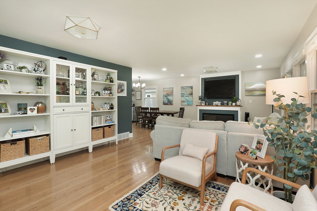 Welcome to your dream home in the highly sought-after Woodland Park neighborhood of Deerfield! This stunning California- style ranch has been meticulously renovated to perfection, showcasing an open floor plan that seamlessly blends comfortable living. Step inside to discover a completely transformed space, totally renovated inside and out as well as featuring updated plumbing, electrical systems, a new roof, and energy-efficient windows. The heart of the home is a breathtaking kitchen equipped with a spacious island, stainless steel appliances, and luxurious quartz countertops, all flowing effortlessly into the inviting family room-ideal for entertaining and family gatherings. Retreat to the incredible master suite, a true sanctuary boasting a generous walk-in-closet and a spa-like bathroom designed for relaxation and rejuvenation. With three additional well appointed bedrooms on the main level. The finished basement expands your living area, offering a versatile recreation room, a dedicated office space, andd an exercise area, complete with a convenient powder room and ample storage. Outside, enjoy the privacy of a fully fenced yard, perfect for outdoor activities.