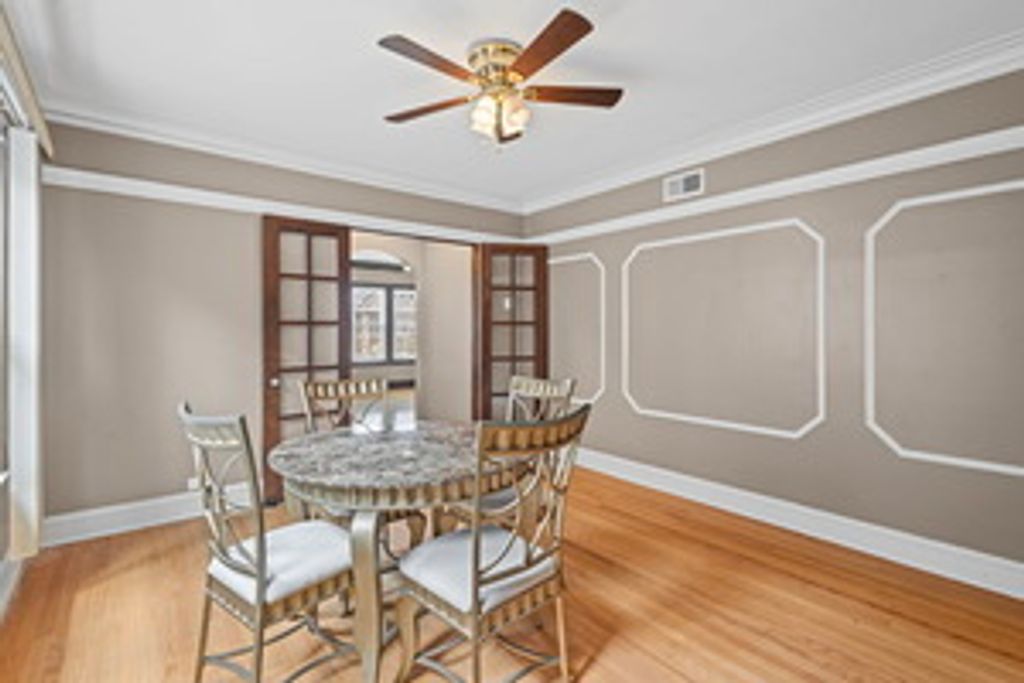 Welcome to this beautifully maintained brick bungalow offering the perfect blend of classic charm and modern comfort. Featuring 5 spacious bedrooms and 2 full bathrooms, this home provides plenty of space for families of all sizes. Step into the warm and inviting living room with gleaming hardwood floors, seamlessly connected to the elegant dining room through classic French doors-ideal for entertaining or everyday living. The kitchen features a cozy breakfast nook, ideal for morning coffee or casual meals with the family. Downstairs, you'll find a fully finished basement that adds even more living space, complete with a cozy family room and a custom bar area-perfect for hosting guests or relaxing on weekends.