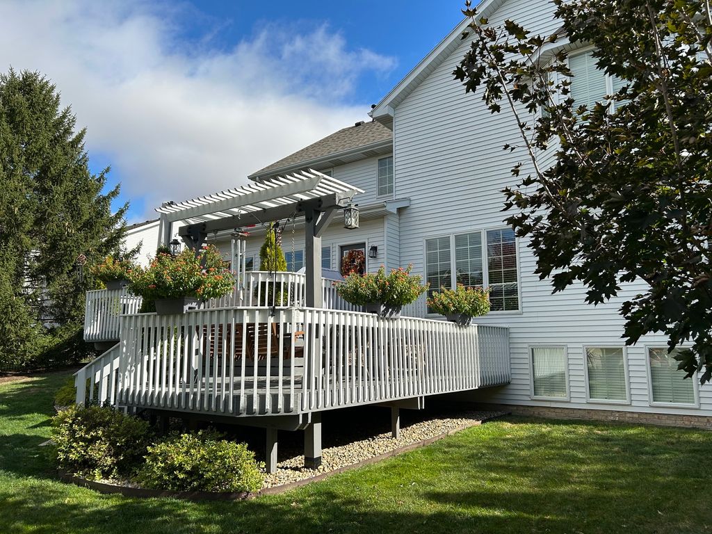 This beautifully updated four-bedroom two-story home with three full baths and two half baths features 2 en-suites, a large three-car side-load garage that was custom-built by Jack Ruch, showcasing timeless craftsmanship and quality construction throughout. From the elegant curved staircase to the spacious, well-proportioned rooms, this home offers classic beauty with modern updates. All rooms have been freshly painted within the last three years, and the home has seen extensive upgrades year after year. 2022 updates include: new refrigerator, microwave, gas stove with double oven, dishwasher, disposal, new water heater, hardwood floor in the family room, all new lighting fixtures, ceiling fans, and blinds. Solar guard was added to the family room, entrance, skylights, and back door windows. 2023 updates include: carpet in the living room and front stairs, all new granite countertops, faucets, and sinks replaced in the kitchen, bathrooms, and utility rooms. Furnace humidifier, tiled floor in the basement half bath, exterior garage entrance door, and window treatments in the living room and dining room were all updated at this time. 2024 updates include: second-floor carpeting was replaced, kitchen tile backsplash, and window treatments in the kitchen and family room. 2025 updates include: new front sidelights, plantation shutters, and the main garage door opener. The spacious, finished basement features daylight windows, a possible office area, and abundant storage. Outside, the beautifully landscaped yard offers a two-tier deck - perfect for entertaining or enjoying outdoor living. If you are seeking a home that combines style, quality, and high-end updates, be sure to visit 2006 Woodbine Road and experience this exceptional property for yourself.