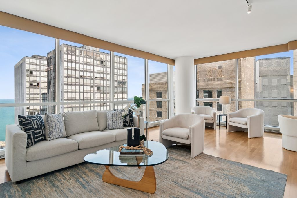 RARELY AVAILABLE CORNER UNIT with FLOOR-TO-CEILING WINDOWS framing stunning views of LAKE MICHIGAN, NAVY PIER, and LAKE SHORE PARK. This 1,900 SQ FT 2 BED / 2.1 BATH home at THE PEARSON offers an expansive open layout flooded with NATURAL LIGHT. Beautifully finished with HARDWOOD FLOORS throughout, GRANITE COUNTERS, STAINLESS STEEL APPLIANCES, and upgraded cabinetry. Spacious living/dining area ideal for entertaining. Oversized PRIMARY SUITE features a WALK-IN CLOSET, a soaking tub, and DOUBLE VANITY. Enjoy IN-UNIT LAUNDRY! Full-amenity building with 24-HOUR DOOR STAFF, FITNESS CENTER, ROOFTOP SUNDECK, PARTY ROOM, BIKE STORAGE, and on-site management. Steps from the LAKEFRONT TRAIL, MCA, and all the best of STREETERVILLE. Assessment includes HEAT, A/C, CABLE & INTERNET. TWO ASSIGNED PARKING SPACES (170/171) $50k!