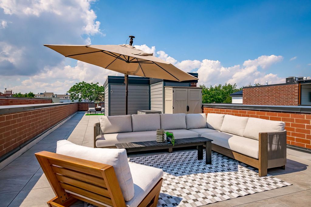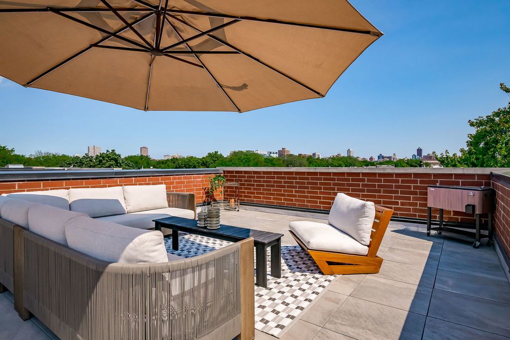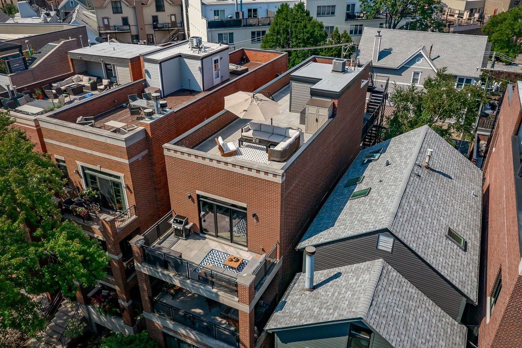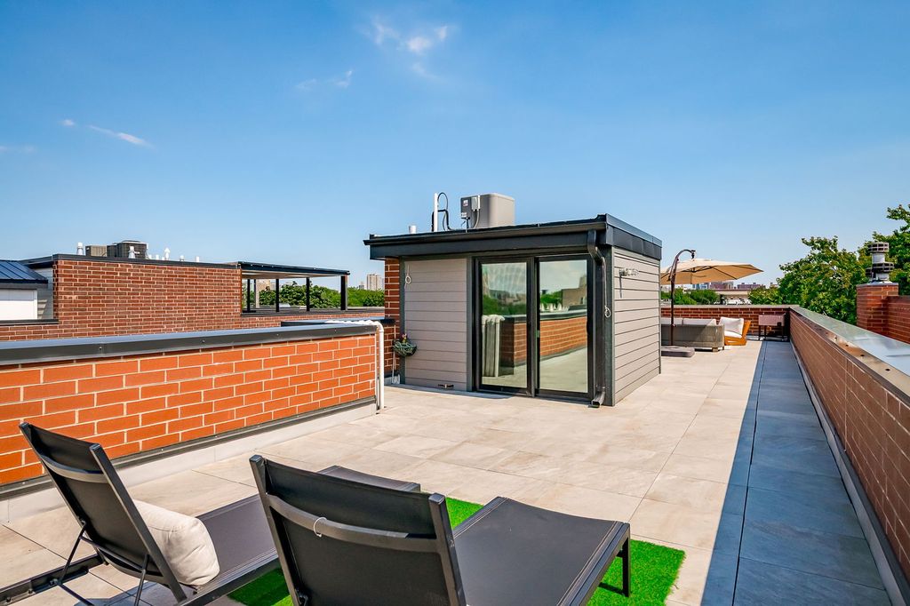 QUALITY construction designer home awaits you! This penthouse unit complete with PRIVATE ROOFDECK is ideally located on cusp of Lincoln Park and Lakeview. Luxury finishes throughout; solid brick exterior, 3.25" oak hardwood floors, high-end appliances (2020), quartz countertops, custom closets, custom millwork, surround sound capabilities, and more! Gourmet kitchen is made for entertaining with an oversized island, Wolf stove top, custom cabinetry that extends to the ceiling, and designer light fixtures. The open floorplan, flows into the living room complete with gas fireplace, and dining room showcasing embossed designer wallpaper for an understated wow factor. Looking for outdoor space? This home features a MASSIVE Eastern exposure terrace (9'x18'!), complete with gas line for grilling, overlooking tree-lined street (great for privacy). Make the most of the dog days of summer on your personal tiled roofdeck complete with both gas & water lines for a firepit & more - enjoy as-is, or make it the oasis of your dreams. Primary en-suite features walk-in closet, and heated floors, dual vanity, herringbone tile work, and oversized steam shower in the bathroom. Access in hall (not bedroom) to the detached all brick garage with one parking space included in price (northernmost). There is also a personal storage closet for your overflow items in the back of the building. Nothing to do but MOVE RIGHT IN!