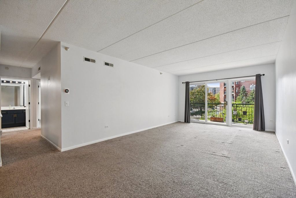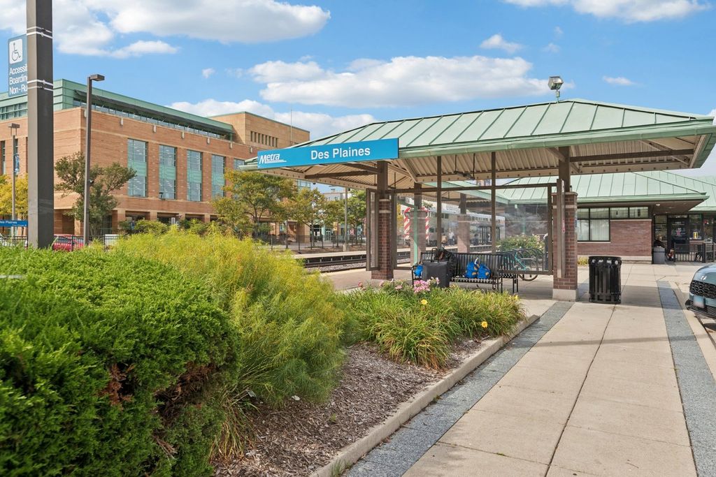 Modern & spacious 2-Bed/2-Bth condo in perfect Des Plaines location! This unit is updated and move-in ready! As you enter, you're greeted by an expansive living room/dining room combo with built-ins including a bar fridge and sliders that lead out to your large, private balcony. The kitchen has been updated and features black SS appliances, shaker cabinets and modern hardware and flooring. The spacious Primary suite has tons of storage space between 2 closets and a wall of cabinets in the large en-suite bathroom. The bathroom also houses the separate laundry room. Another great sized bedroom and updated full bath round out this unit. 1 parking spot on 2nd floor (#52) in heated garage included plus a storage unit behind the parking. You can't beat this condo or it's location - centrally located in downtown Des Plaines you are steps away from the newly renovated and reopened Des Plaines Theatre, tons of restaurants, groceries, gyms, the library and so much more. You're also directly across from the Metra station so transit into the city is a breeze. Schedule your tour today!