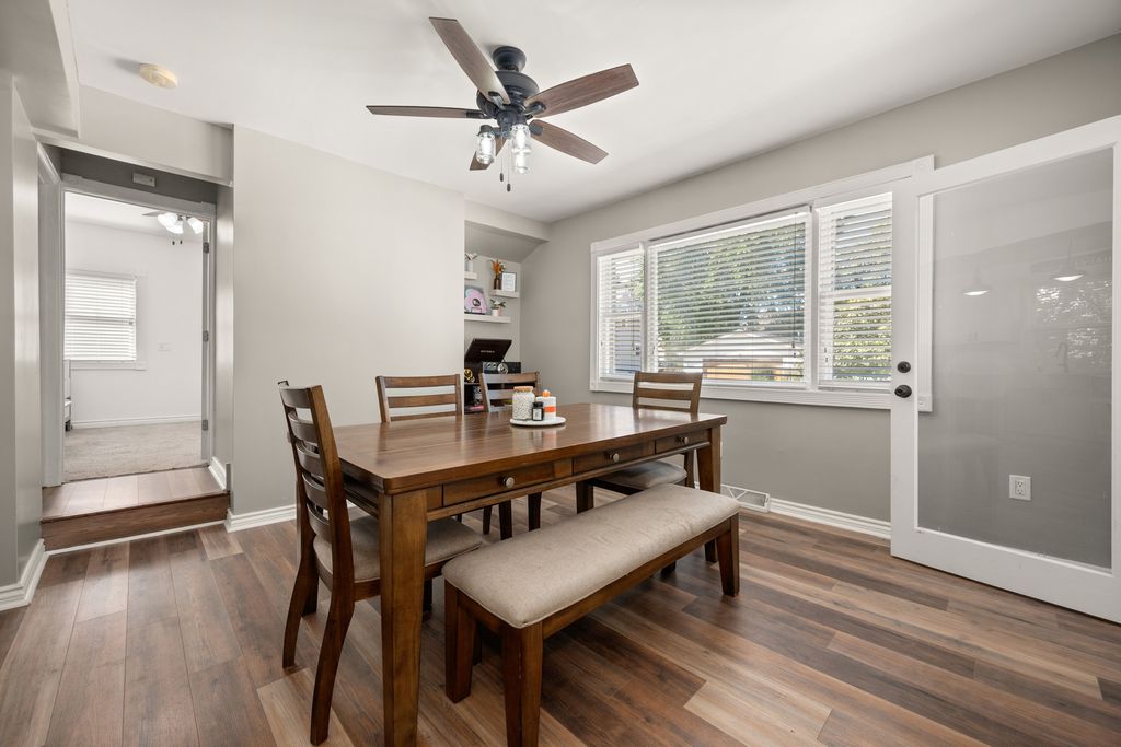 CHARMING AND COZY JUST WAITING FOR YOU! Step onto the welcoming front porch and discover a home that beautifully blends timeless charm with thoughtful updates. This 3-bedroom, 2-bath home offers the perfect mix of comfort, character, and convenience. Inside, the inviting living room sets the tone for relaxed living, while the updated kitchen shines with new cabinetry, Quartz counters, farm sink, tiled backsplash, stainless steel appliances, and pendant lighting. Open to the dining area, it's a warm and stylish space ready for both everyday meals and memorable gatherings. The first floor features a convenient bedroom and full bath with walk-in shower, plus a laundry room with washer and dryer and direct outdoor access. Upstairs, two more bedrooms and a full bath with tub/shower provide peaceful retreats. Throughout the home, ceiling fans and abundant lighting create a bright, welcoming atmosphere. Outdoors, take some time to relax on the covered front porch while enjoying your favorite beverage. The addition of a 12' x 12' shed for storage, hobbies, or a workshop is a plus! UPDATES: New front side door, resurfaced and painted front and back porches, updated bathroom (2025), updated kitchen (2022), new modern furnace and new central air (2021), updated electrical and plumbing, replaced many windows (2017), and roof is approximately 10 years old. Wonderful location near downtown Sycamore, schools, parks, shopping, restaurants, medical facilities, and more! Everything you need is just minutes away. CHARMING, UPDATED, AND MOVE-IN READY, THIS HOME IS WAITING TO WELCOME YOU IN!