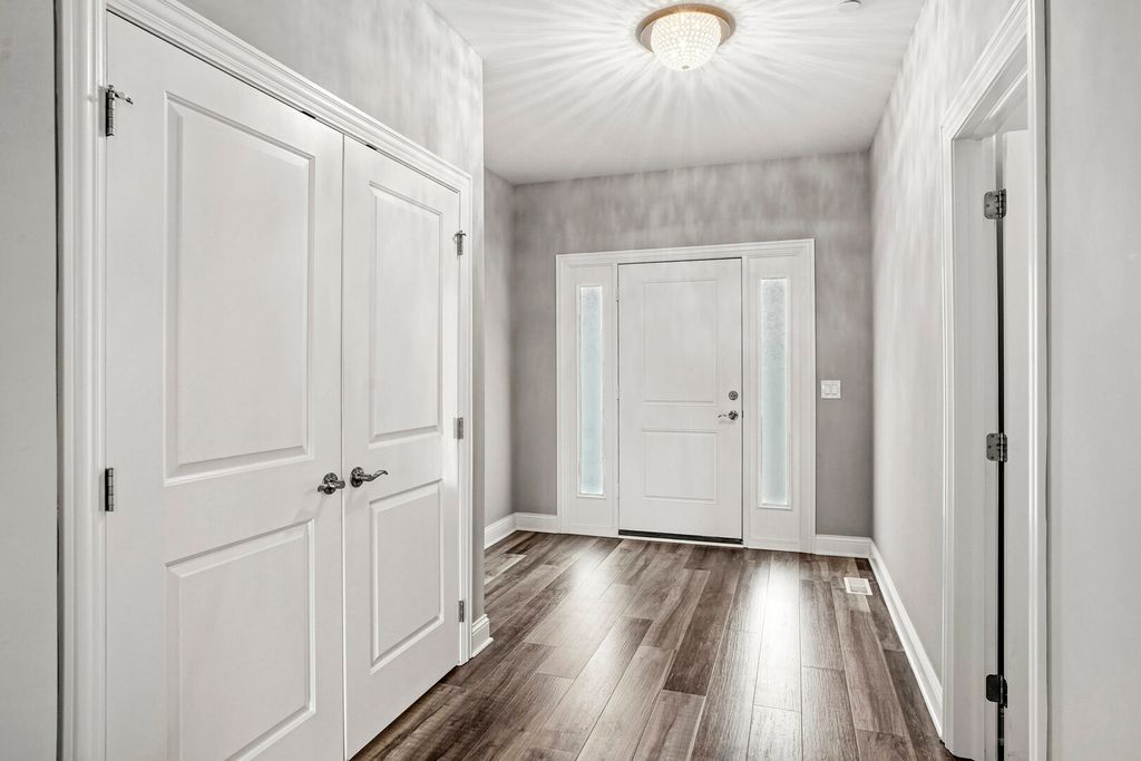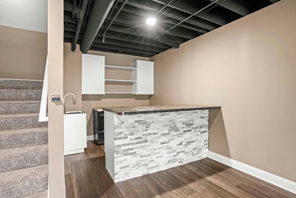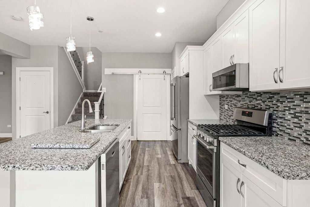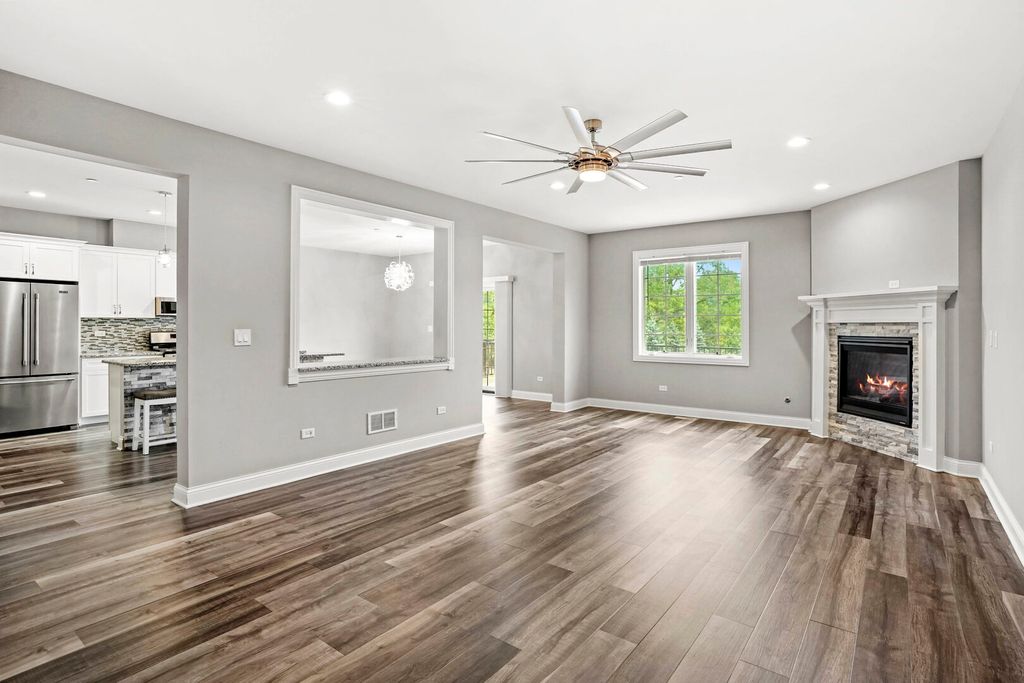 Built in 2019, this beautifully maintained 3-bedroom, 3.5-bath townhome offers modern finishes, a versatile layout, and serene pond views right from your backyard. Step inside to an open-concept main level featuring a bright living room with a cozy fireplace, seamlessly flowing into the dining area and a well-appointed kitchen with stainless steel appliances, ample cabinetry, and stylish countertops. A low maintenance trex-deck overlooking the pond makes the perfect spot for morning coffee or evening relaxation. Upstairs, you'll find three spacious bedrooms, including a private primary suite with a walk-in closet and en-suite bath. The finished walkout basement expands your living space with a large recreation room, wet bar, and direct access to the patio-ideal for entertaining or quiet evenings outdoors. Additional highlights include 3.5 bathrooms, plenty of storage, an attached garage, and a very quiet community. With its modern design, inviting living spaces, and peaceful setting, this home is move-in ready and waiting for its next chapter.