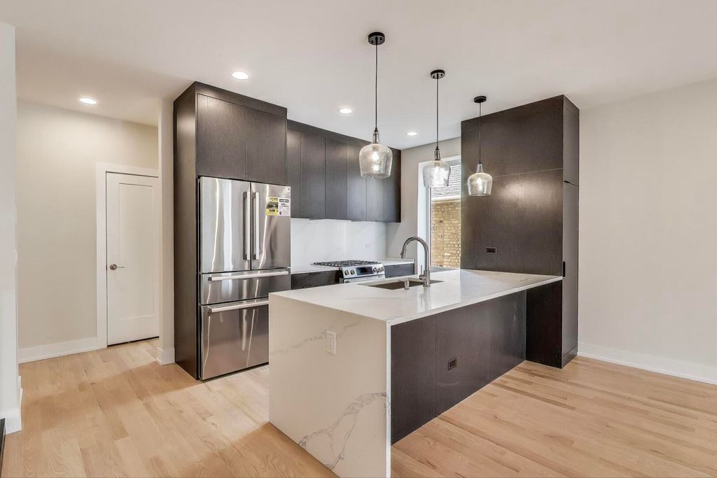 All Brick and High-Quality New Construction in Prime Avondale location, by Masonry contractor/ Builder with 25+ years of experience. Located on a tree-lined street, this boutique development on a double lot, offers a total of 5 units. This 3 beds 2.5 baths Duplex unit offers 2 levels of living space along with a spacious front balcony, the sleek design and attention to detail. Custom finishes throughout, an open kitchen with a large island with waterfall edge and premium Bosch appliances, top-quality floor to ceiling flat panel cabinets, pantry closet, tons of storage, Hardwood floors, solid core doors, quartz countertops and oversized European multi-position windows that admit Tons of natural light...makes this home truly rear find and Great Value for the space and location. Along with great outdoor space and an elegant two-story design, this exceptional building is perfect for those seeking a blend of comfort and style in a tranquil setting. Perfectly located just about 0.5 mile from CTA Blue Line and local stores, restaurants, gyms nearby, and easy access to I 90/94. Garage parking is included in price. Pictures of Unit 1S, but represent the same finishes.
