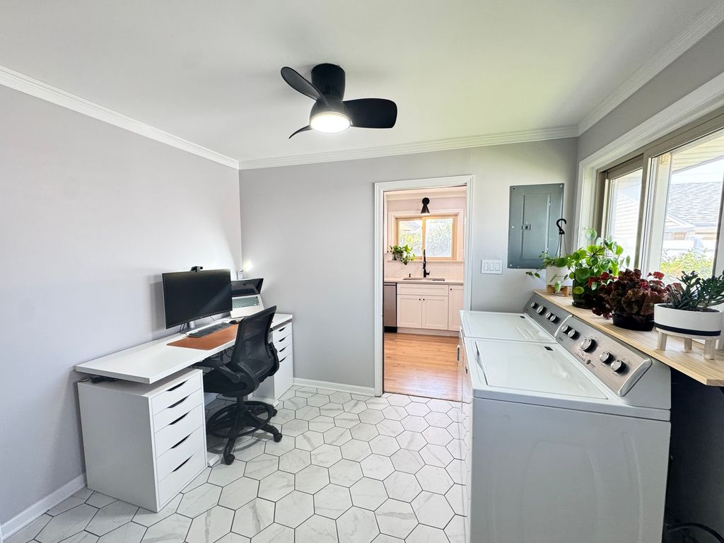 Beautifully updated 3 bed, 2 bath home in the heart of Morton Grove! This one-level home is ideally located near the Metra, restaurants, shopping, Old Orchard Mall, and parks. Bright living and dining rooms feature recessed lighting, updated fixtures, and restored hardwood floors. The redesigned kitchen offers custom cabinetry with soft-close drawers, stylish tile backsplash, and newer appliances (range, refrigerator, microwave all 2 years old). Freshly painted primary suite includes a private bath with stand-up shower. Two additional bedrooms, a full bath, and laundry complete the home. Recent upgrades include recessed lighting, tankless water heater (2023), and modern finishes throughout. Enjoy a backyard with patio-perfect for entertaining or relaxing. Move-in ready Morton Grove real estate combining timeless charm, modern comfort, and unbeatable location near Chicago.