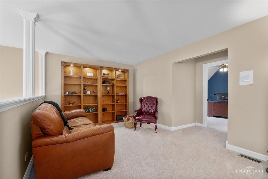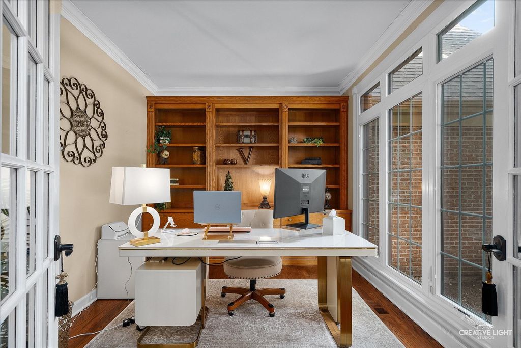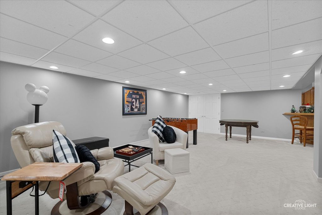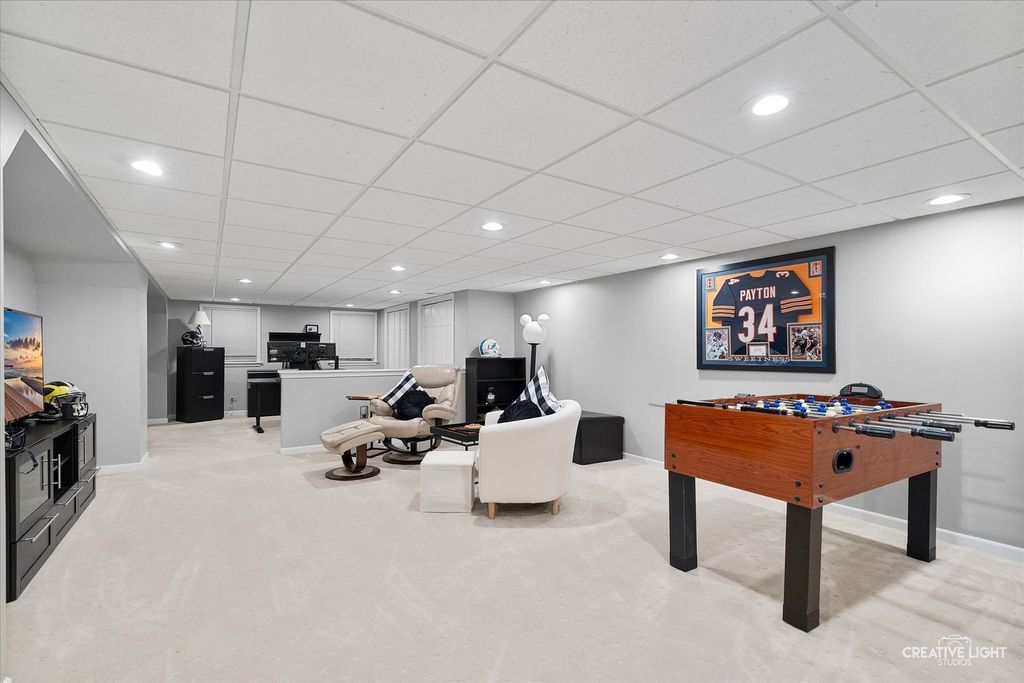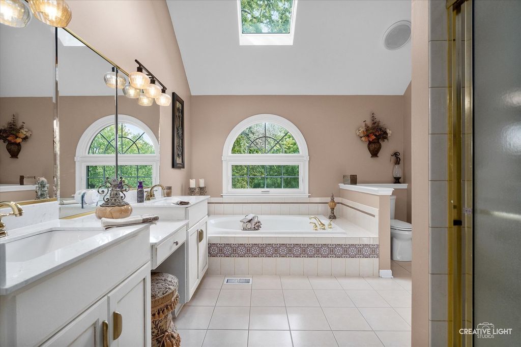 Prestigious River Run Half acre+ corner lot! This elegant 3700+ SF custom built home by Kings Court Builders blends refined luxury with thoughtful updates throughout. Featuring 4 bedrooms, 4.5 baths and a fully finished basement with newer carpeting, this home offers space, sophistication and timeless comfort. Step inside the grand two-story foyer to find stunning hardwood floors and a beautiful staircase with wrought iron spindles. The formal living and dining rooms offer custom white wood work with crown molding and tray ceiling. The 1st floor office has french doors, crown molding and built ins. The beautiful large kitchen with granite counter tops, SS appliances, large island, separate coffee bar and wet bar make this an entertainers dream. The Fanimotion paddle fan and 2 story brick gas log fireplace add to the grandeur of the family room. This central gathering place offers an impressive vaulted ceiling with 2 skylights, amazing views of the beautiful backyard and a rear staircase with wrought iron spindles that mirror the foyer staircase. The 1st floor also has an updated mud room with board & batten, coat closet, separate laundry and updated powder room that has space that can be converted to full bath by adding shower. Stunning cathedral master bedroom with adjacent cathedral master bath with skylight, double sink, soaking tub and walk-in closet with custom Closet Works organizers. Two of the Three additional bedrooms have cathedral ceilings, one w/adjacent full bath and large loft overlooking Fam Rm perfect for an in-law set up. The third 2nd floor bath has double sinks and a compartmentalized toilet and shower room. An additional 1,300+ sq ft of living space in the finished basement w/full bath, wet bar + mini fridge, theater area,rec/game room and unfinished room for storage. The 3 car garage has deep 3rd bay! Step into the serene beautifully landscaped back yard with new stamped concrete patio (2023). Dual zone A/C (new 2021 & 2022), sprinkling system, New Sump Pump Battery Backup (2019), New Roof (2020), New Gutters (2020), New Skylights (2020), New Pella Energy Efficient Maintenance Free Windows (2021), New Pella Patio Door (2021), Two New Furnaces (2022), Two New Hot Water Tanks (2023), New Stamped Concrete Front Walkway and Stoop (2023) Home comes with Equity Membership to River Run Club: includes heated indoor/outdoor pools, tennis and pickle ball courts, state of the art gym, sauna and steam room. Award winning IPSD 204.