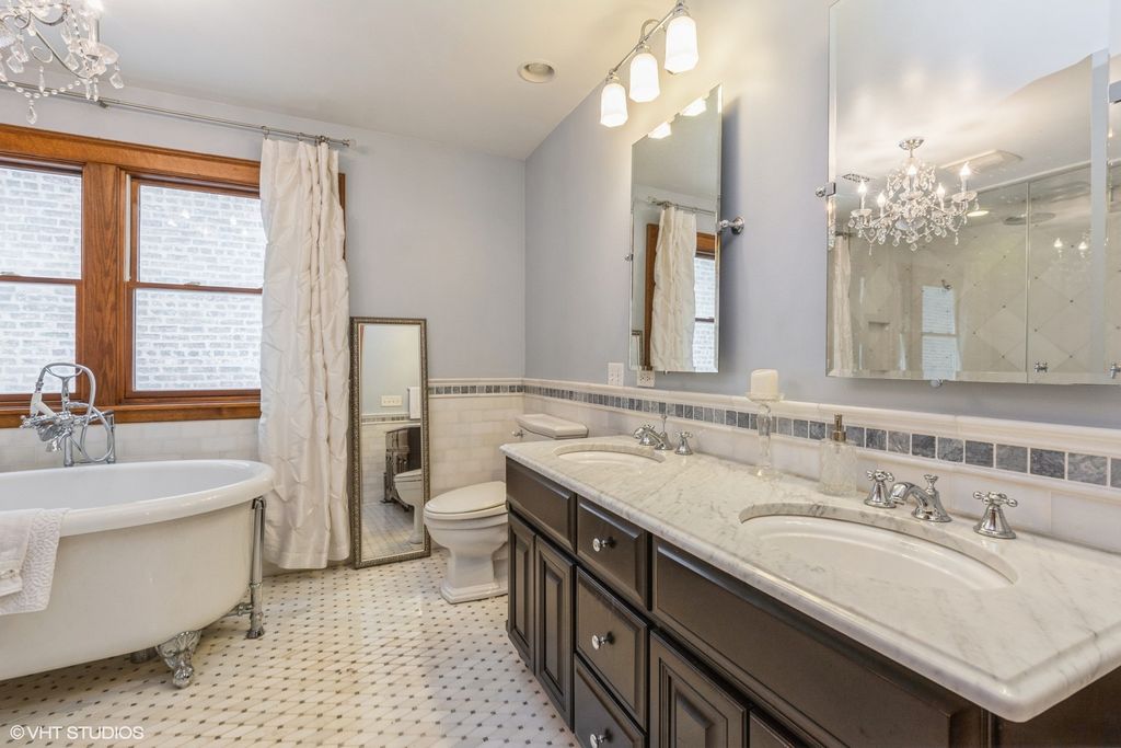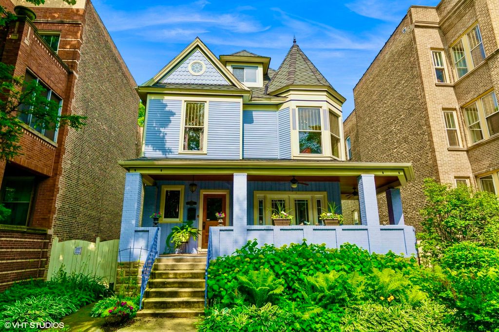 Welcome to this one-of-a-kind 1895 Queen Anne stunner, tucked away on a peaceful, tree-lined street in the heart of Edgewater Glen. With its stately presence, wrap-around porch, and storybook gardens, this home feels like something out of a magazine-but with all the modern comforts you crave. Sitting proudly on a rare double lot, this gem offers over 2,900 sq ft of living space/above grade and 1,160 feet in the basement, for a total of 4,060 square feet, and a backyard paradise with perennial flowers, a veggie patch, and plenty of space for summer parties, backyard games, or simply lounging with your favorite book. The exterior has been lovingly cared for with premium Hardy Board siding and a custom roof (2014). Two oversized 2.5-car garages? Yes, you read that right-perfect for cars, hobbies, or creating your dream workshop. Inside, every detail has been reimagined with style and craftsmanship. Newly installed teak hardwood floors and custom millwork flow seamlessly throughout. The gourmet kitchen-decked out with sleek stainless steel appliances (2019)-makes entertaining effortless, especially when paired with the open main-level layout and built-in sound system. The basement is a total knockout: fully gutted and redesigned with acid-stained concrete floors, a chic bathroom, a dedicated laundry room, and upgraded copper plumbing + brand-new electrical to keep everything running smoothly. Upstairs, the primary suite is a spa-worthy retreat, boasting a marble-clad bathroom with a no-threshold frameless steam shower, an air-bubbling soaking tub, and a double vanity that might just inspire you to spend a little extra time getting ready. The third-floor en-suite is an incredible bonus-perfect for guests, in-laws, or that dreamy work-from-home office. And let's not forget the unbeatable location: stroll to the lakefront, Andersonville's vibrant dining scene, Whole Foods, the Red Line, and top-rated schools. Vintage charm. Modern luxury. An address everyone will envy. Welcome home to Edgewater Glen living at its finest.