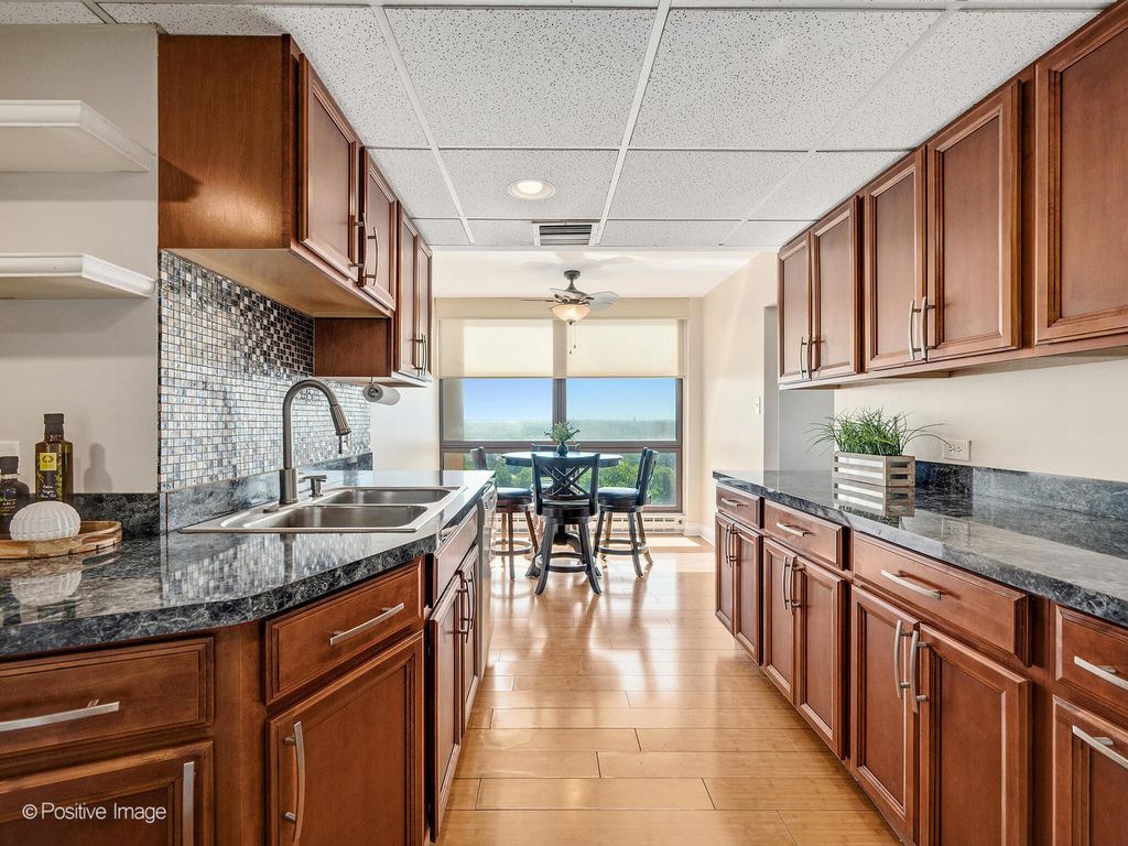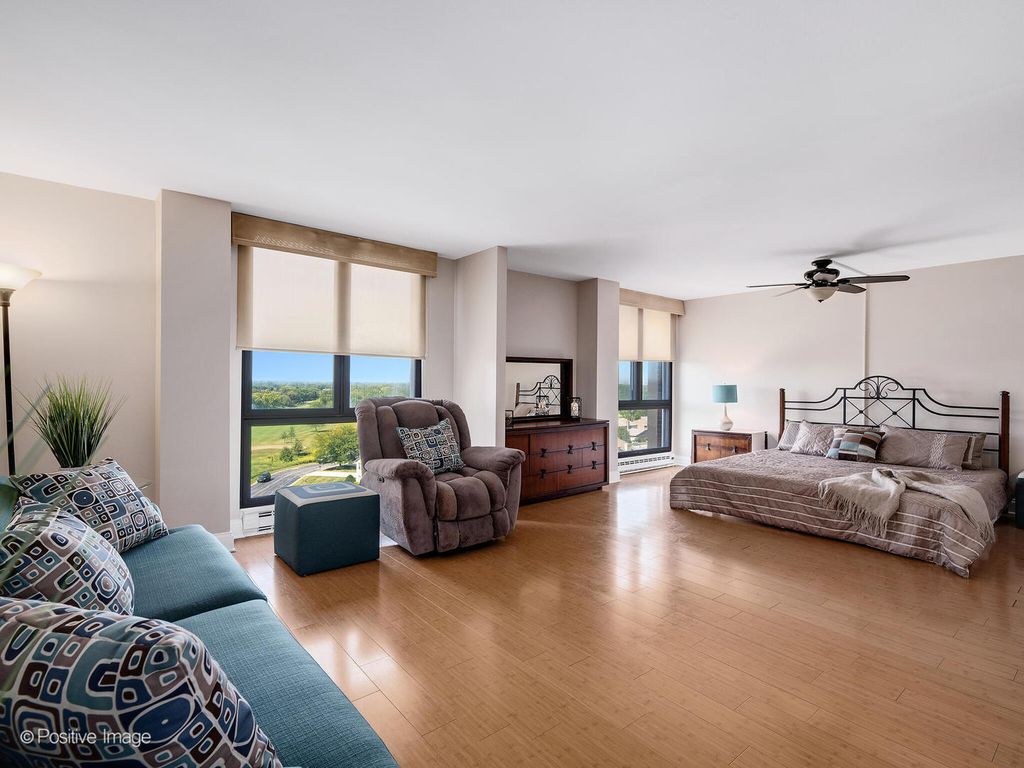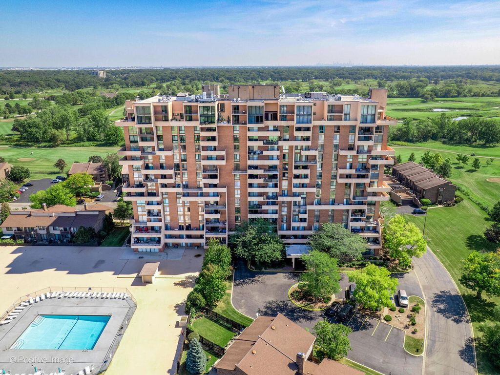 STUNNING BEYOND WORDS! Experience luxury living in this exquisitely crafted Dominion Tower end unit, spanning over 1800 sq ft. This remarkable residence blends a glorious open concept with spectacular views from every window. Upon entering you can't help but cherish the attention to detail. Floor to ceiling windows and patio doors, oversized baseboards, gorgeous bamboo flooring throughout (no carpeting), and a fluid and functional floor plan. Marvel at the expanse of the open concept living room dining room area which opens to the spacious private balcony offering breathtaking panoramic views of the adjoining Maple Meadows Golf Course. The eat-in kitchen offers sleek maple cabinets, ample cabinet and counter space, a pantry closet, and breakfast bar area all flooded in abundant natural light. The massive primary suite is a cherished retreat featuring a delightful sitting area, 3 spacious closets, floor to ceiling windows, and a luxurious full size bath. The second bedroom offers another opportunity to step outside onto the balcony and enjoy the treasured landscape. The full size hall bath features a vessel sink and travertine finishes. But there's more, in-unit laundry, 3...yes 3 coveted garage parking spaces (#4, 41, and 390), 2 storage lockers(#2 and 12), and resort style living at it's finest. The list of amenities is endless...outdoor pool and patio area, tennis courts, a fully equipped fitness center, welcoming lobby and sitting area, clubhouse, and a location like none-other. Just minutes to the Metra Station, I-290 and I-355, shopping malls, restaurants, and entertainment as well as O'Hare International Airport, Ascension Alexian Brothers, Elmhurst, and Northwest Community Hospitals, yet surrounded by golf courses, forest preserves, and a multitude of outdoor activities. This home represents the epitome of luxury, convenience, and functionality. HERE IS WHERE YOUR NEXT CHAPTER BEGNS!