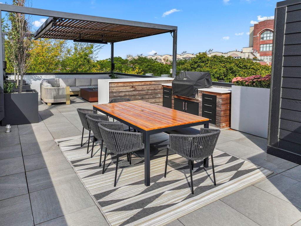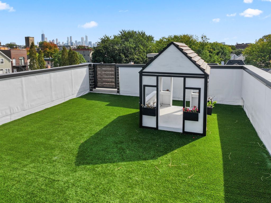 Welcome to 1427 W Wrightwood Ave, Unit 2, a stunning duplex-up in the heart of Lincoln Park. Built in 2020, this boutique full-brick residence lives like a single-family home with 4 spacious bedrooms and 3.5 bathrooms, including three ensuite retreats. The main level offers a seamless open layout anchored by a chef's kitchen with a massive 12' quartz island, custom cabinetry, quartz backsplash, and fully-integrated panel appliances. White oak hardwood floors run throughout, adding warmth and elegance. For entertaining, step into the family room that opens to a 300 sq ft covered deck complete with a masonry fireplace, or head upstairs to your private rooftop deck. Outfitted with pavers, gas and water lines, outdoor speakers, lighting, a bar, and a custom pergola, it's the ultimate setting for summer evenings or gatherings under the skyline. The primary suite is a true retreat with oversized his-and-her walk-in closets and a spa-inspired bath featuring a double vanity, heated floors, steam shower, and separate soaking tub. Additional bedrooms provide generous space with flexible use for an office, den, or playroom. Located in one of Chicago's most sought-after neighborhoods, you're just moments from parks, shops, dining, and easy access to transit. Modern design, outdoor living, and Lincoln Park convenience - this home has it all.