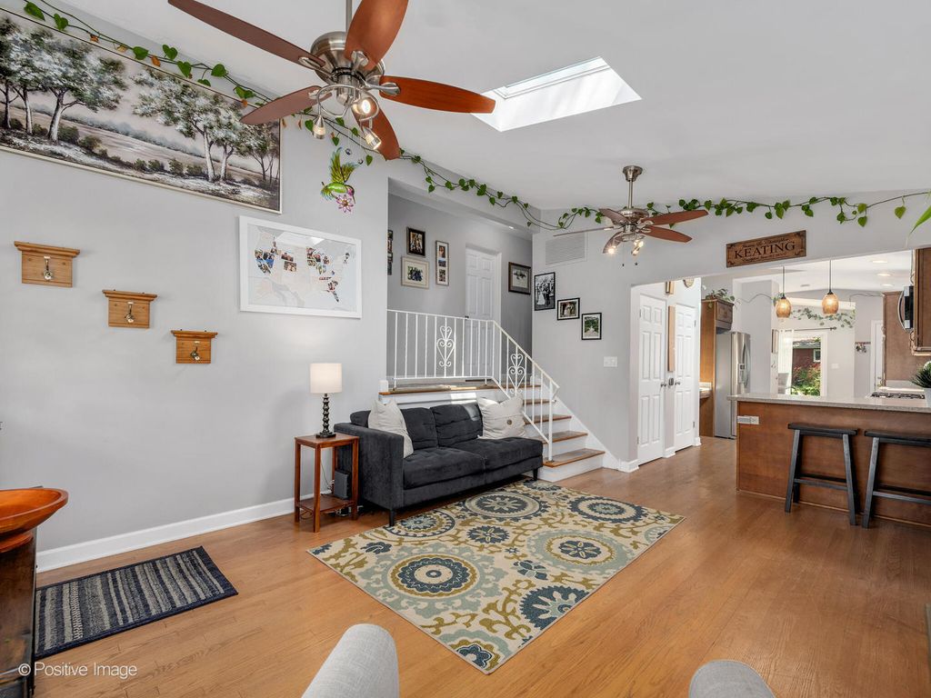 Welcome to this beautifully maintained 3-bedroom, 2-bathroom home in a prime Lombard location offering a perfect blend of comfort, space, and updates. The main level offers an open-concept layout with vaulted ceilings and skylights that flood the space with natural light. The open layout kitchen features 42" cabinets, stainless steel appliances, a pantry, a full dining room that was an addition to the home, and a large breakfast bar that opens to the family room with a fireplace - ideal for entertaining or everyday living. The finished lower level includes a large open space along with a second bathroom, laundry, walk-out access to the backyard, and a massive crawl space with 6-foot ceilings-perfect for all your storage needs. Upstairs, you'll find three generously sized bedrooms and a full bath. Additional highlights include a coat closet and a 2.5-car garage with an extra-wide cement driveway for ample parking. The dining room addition and large crawl space with 6' ceilings truly make this home uniquely functional! Newer roof, furnace, and A/C. All this is located just minutes from award-winning Hammerschmidt Elementary, parks, shopping, dining, and the Metra station!