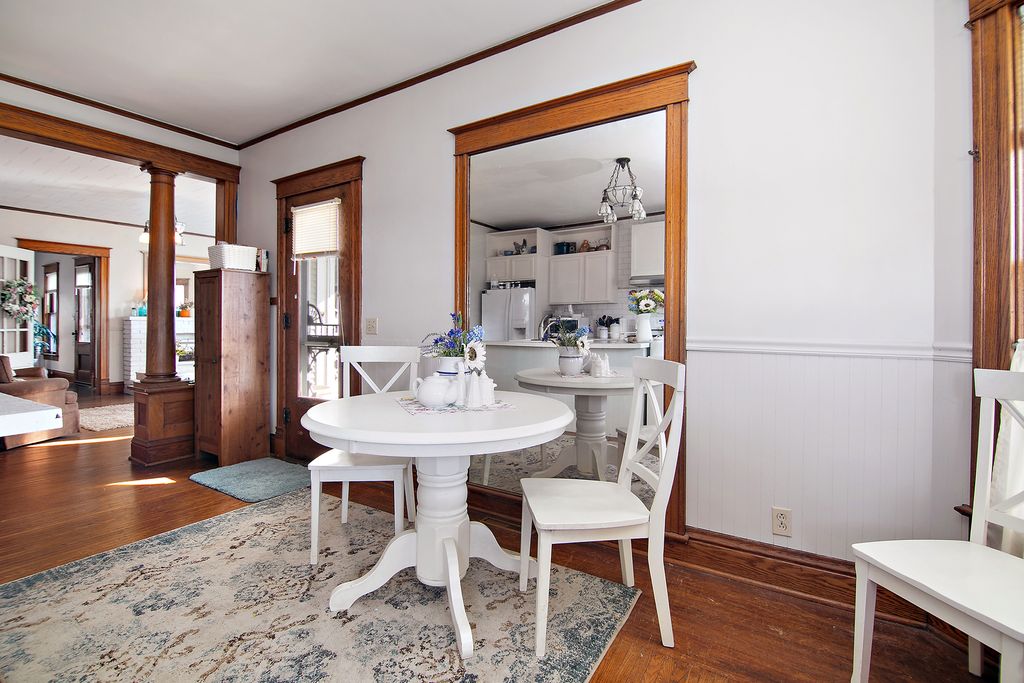 Step back in time with this charming Victorian home offering 5 bedrooms and 2 full baths, set on a spacious double lot in Beaverville. This well-loved property has been owned by the same family for 45 years and showcases gorgeous original woodwork, solid doors, and gleaming hardwood floors throughout. The inviting floor plan features a large living room and family room on the first floor, a country kitchen with table space, plus a first-floor bedroom, full bath, and convenient laundry. Enjoy the abundance of natural light from the many windows and relax on the wraparound front porch, perfect for morning coffee or evening sunsets. Upstairs you'll find additional bedrooms with plenty of space for family, guests, or a home office. The basement offers both interior and exterior access, ideal for storage or workshop needs. A shed adds even more utility. Recent updates provide peace of mind, including a newer septic system, roof, HVAC, and hot water heater. This timeless home combines vintage character with important modern updates-a rare opportunity to own a piece of history in a small-town setting.