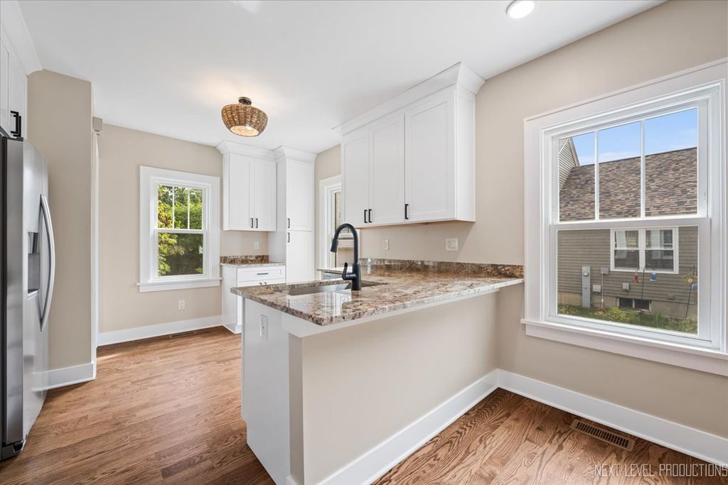 A REAL LIFE DOLL HOUSE! This home has been renovated from top to bottom, literally! NEW roof 2023,NEW windows 2018, NEW in 2025: Furnace-Central air-Kitchen-Flooring-Fixtures-Interior Paint- Basement paint & dropped ceiling! This charming home is sited right in one of Geneva's most coveted neighborhoods, hardly even one block from Geneva Community High School. Eleven blocks to the heart of downtown Geneva and all of the restaurants/shopping/coffee shops/. Pretty yard loaded with perennials for blooming in spring/summer/fall. Oversized one-car garage. Tons of hardwood! Abundant natural light! Great floorplan with 2 bedrooms and full bath on main floor and 2 bedrooms, with sitting room area, upstairs... 2nd floor could easily be a great primary suite if desired! Rec room in basement (with another full bath!) and plenty of storage as well! First time ever on the multiple listing service since it was built in the 1920's! Don't pass this one up!
