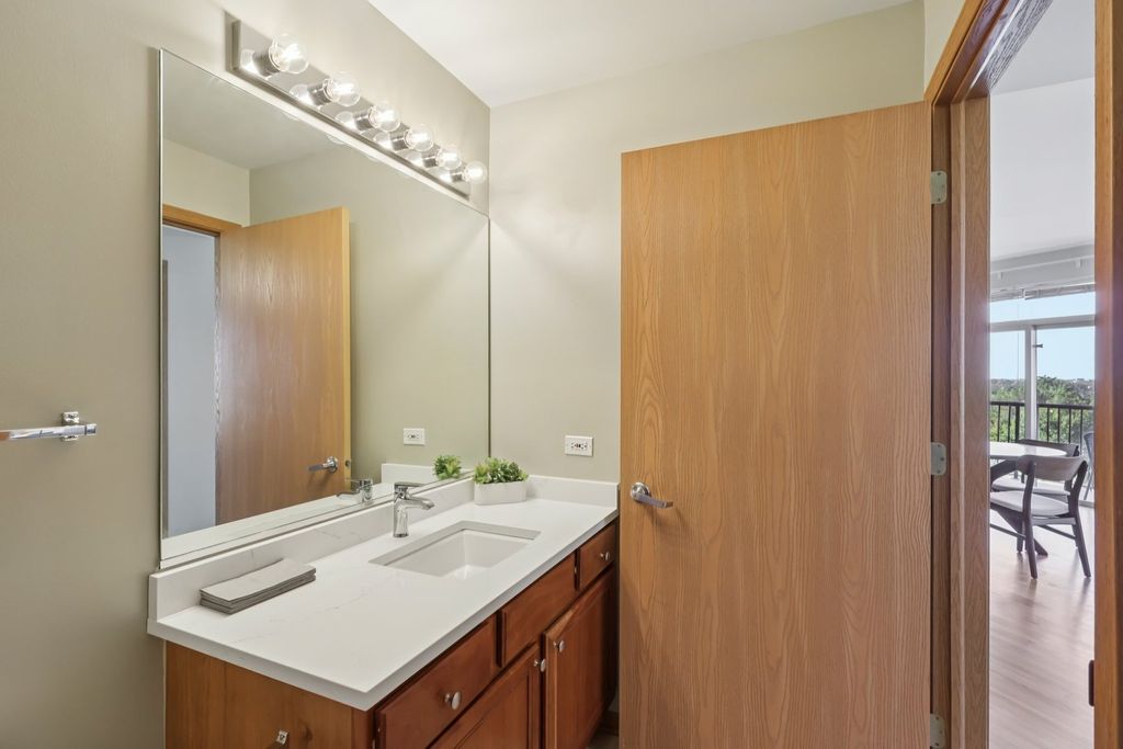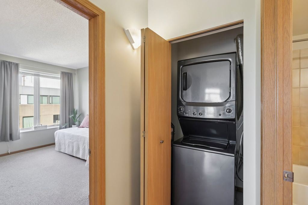 Come see our beautifully staged condo with tree top views. This oversized corner unit with 2-bedroom and 2-bathroom unit offers a thoughtfully designed layout with generously sized bedrooms and abundant closet space. Large living room with open dining room area. Kitchen with great work space and counter seating. Gleaming hardwood flooring in main living areas. The primary bed has an ensuite bath featuring a soaking tub and separate shower. Large hall bath with neutral tones. Enjoy indoor-outdoor living with a corner balcony just perfect for morning coffee or evening relaxation. This condo features newer in-unit laundry. The assessment includes parking, gas, heat, water, cable, and internet-offering incredible value and convenience. A deeded garage parking space (#59) and storage are also included in price. An unbeatable location for commuters: just steps from the Metra, CTA Purple Line, Pace buses, and the Northwestern shuttle. You're also close to lakefront beaches, scenic parks, restaurants and Starbucks in the building. You will enjoy the Main Dempster Mile neighborhood, with local shops and art scene. Well-managed, investor-friendly building with strong reserves-this is a smart choice for both homeowners and investors alike. The current owner has ordered completely new windows for the whole unit.