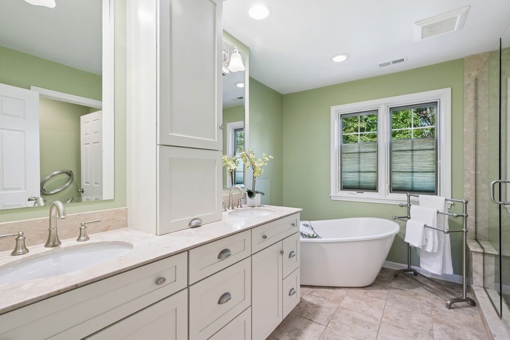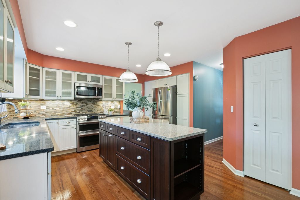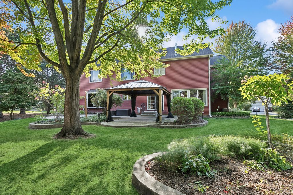 This classic beauty offers timeless charm with a traditional yet semi-custom floorplan in a highly desirable neighborhood. Meticulously cared for and thoughtfully updated, the home welcomes you with gleaming hardwood floors and a remodeled, spacious kitchen that flows seamlessly into the sunroom-perfect for casual gatherings. The family room, anchored by a fireplace, built-shelving and large bay window, creates a warm and inviting setting, while the spacious formal dining room and living room with floor-to-ceiling bookshelves add elegance and character. Upstairs, the primary suite is a true retreat with a generous sitting area, an incredible walk-in closet, and a luxurious bath, complemented by a versatile bonus room ideal for a playroom or home office, plus the convenience of second-floor laundry. 3 other generous bedrooms. Remodeled bathrooms and a finished basement provide style and function throughout. The garage is equipped with wall system organizers, while the backyard oasis-complete with mature trees, a patio, and pergola spaces-offers a private escape. Perfectly located near schools, train, walking paths, the lake, and town, this home blends classic design with modern living in the most inviting way.