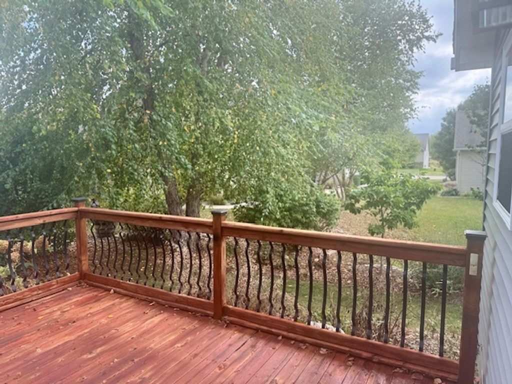 BRAND NEW ROOF being installed!! Great location near Prairie Vista Golf Course in the lovely Wittenberg Woods Subdivision. Looks are so deceiving with this beautiful 4-bedroom home with 3 full baths, beautiful eat in kitchen, nice spacious living room with gas fireplace, and a large family room with surround system. The laundry room is in the basement with counter and extra storage. This home has gorgeous landscaping surrounding the entire property with an irrigation system. This home has been on the Garden Walk 2 years by request. Other nice amenities are the custom brick paver drive & front porch, heated 2-car garage with washer/dryer hook up and a freshly stained rear deck. Improvements include, HVAC, water heater, new flooring throughout with the exception of the ceramic tile in kitchen, bathroom and the hardwood entry & hallway. Main floor primary suite has vaulted ceiling, 5' wide tiled shower with dual controls. The basement has a huge family room/rec area with 9' ceiling and finished with custom trim & crown molding. The 70 " TV with surround sound will stay with the home along with the wall mounted big screen in the living room. This home is ready for a new owner! Don't miss this well cared for property. in such a great location & quiet neighborhood.