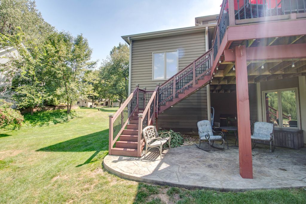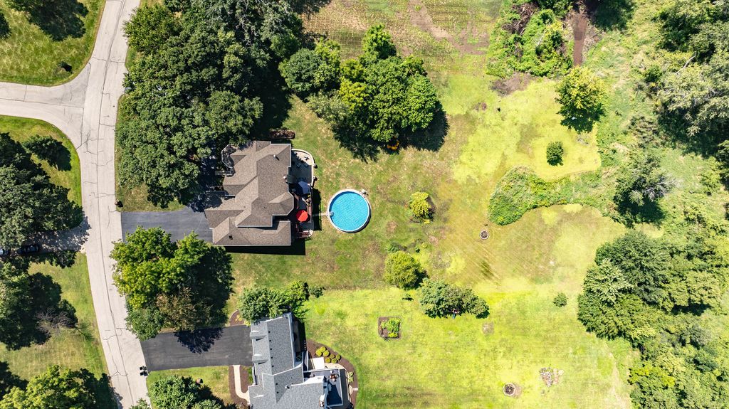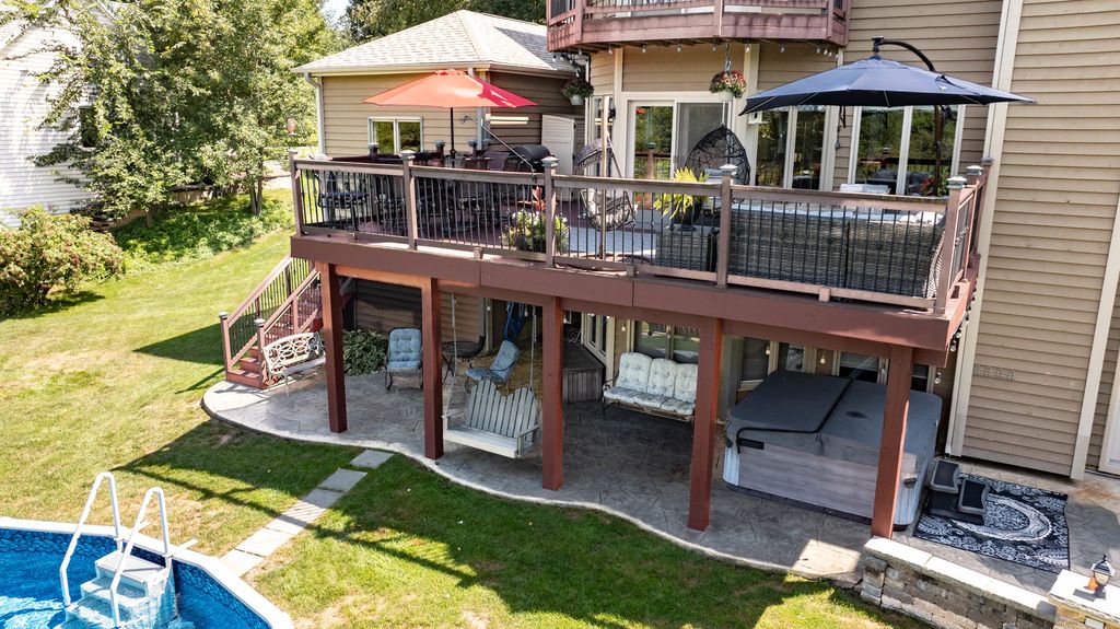 Style, elegance and comfort best describe this 5 bedroom, 3.1 bathroom home situated on over an acre in an excellent location. This home is spacious and inviting, with over 6500 sq. ft. and several updates, including roof 2019, patio doors, some windows, garage floor epoxy with lifetime warranty in 2019, both A/C units in 2022, both water heaters and butler pantry in 2024. Refinished hardwood floors and complete master bath remodel in 2025. This is a chef's dream with tons of cabinets encompassing a large island with granite tops and dual mood lighting in the kitchen that flows into the living room with a floor to 18ft. ceiling hearth fireplace. The back deck off of the kitchen overlooks the 30ft pool, the gorgeous landscaping, lots of nature and wildlife. The second floor bedrooms feature vaulted ceilings, large second floor laundry, master suite with private balcony and an enormous walk in closet right off the newly remodeled master bath. The Master closet also leads to a second floor laundry room from the other side. The walkout lower level features a full custom wet bar with granite, movie projector theater, Built-in sound system, recreation area, bedroom, a full bath with steam shower/ Sauna, a firepit area and a 7 person hot tub on the stamped concrete patio just outside the basement. The attached garage is a deep oversized, heated, tandem 5 car, or could be utilized as a workshop, exercise room or just more storage. This home has so much to offer and is in a convenient location but feels like it is close to nature. Security system and Ring cameras activated. The lot next door belongs to the neighbor on the other side of it. They purchased it so that no one would build there. Don't miss a chance to view this amazing home! This is a true Gem, and it shows better in person!!