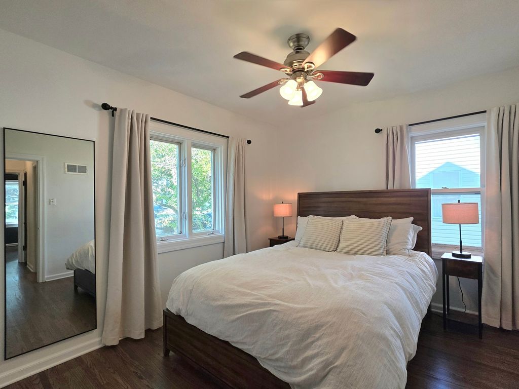Welcome to this beautifully updated Cape Cod home in Joliet, featuring timeless charm and modern upgrades throughout. Step inside through the front door into a spacious living room adorned with stunning hardwood floors, white trim, and a cozy wood-burning fireplace-perfect for relaxing evenings. The formal dining room, ideally situated between the kitchen and living room, offers a great space for entertaining. Enjoy cooking in the large, updated kitchen, complete with stainless steel appliances, a tile backsplash, and ample cabinet space for all your storage needs. The main level includes nicely sized bedrooms and a fully updated bath. A full, unfinished basement provides endless possibilities for additional storage, a workshop, or future living space. Outside, a brick paver patio overlooks the generous backyard, perfect for outdoor gatherings or play. A detached 1-car garage adds convenience. With a roof, siding, and gutters all replaced within the last 10 years, this home offers peace of mind and low maintenance. Conveniently located near shopping, dining, and I-80, this home combines comfort, style, and accessibility in one attractive package.