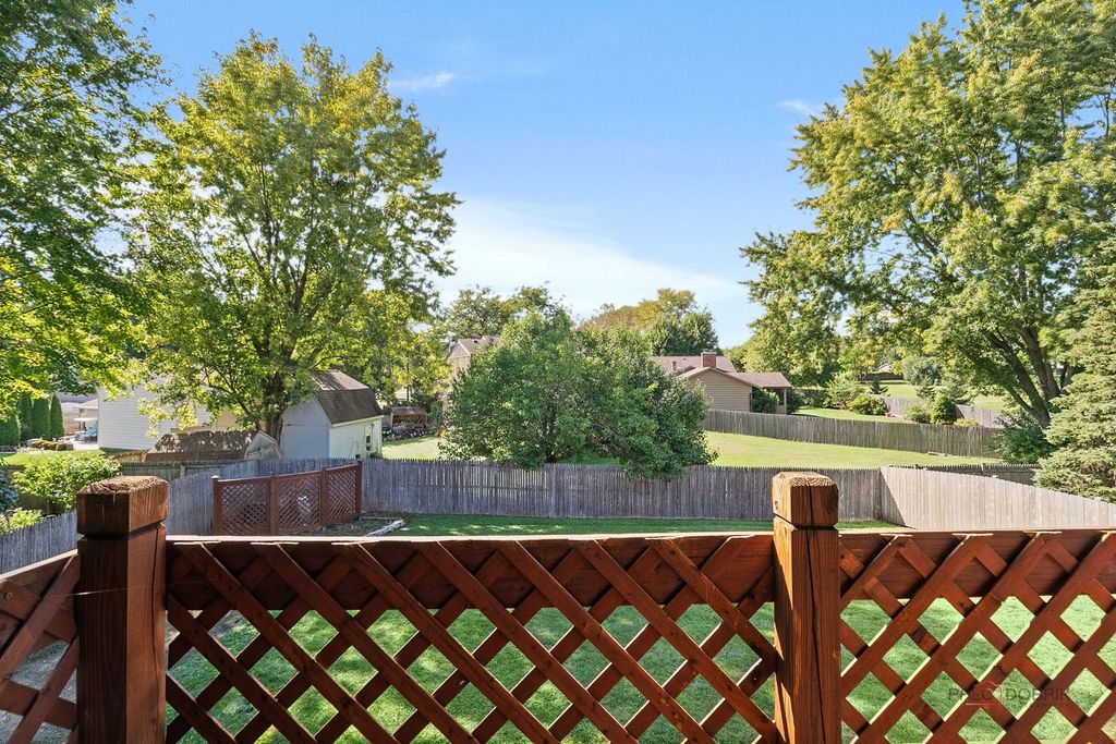 Outstanding, move-in ready 4-bedroom, 3.5-bath home with a fenced yard in desirable Oak Crest Subdivision. As you enter, you're welcomed into a freshly painted home filled with natural light from the floor-to-ceiling windows. The spacious living/dining combo, highlighted by a stunning stone fireplace, is perfect for entertaining. The large eat-in kitchen flows seamlessly into the family room, creating the ideal gathering space. Step outside onto the huge newly stained and sealed deck overlooking a beautifully fenced yard with mature trees-perfect for morning coffee or an evening glass of wine in a serene setting. Upstairs, you'll find fresh paint, NEW LVP flooring, and NEW carpet throughout. The expansive primary suite features a private bath and balcony with views of the backyard. Three additional generous-sized bedrooms and a full bath complete the second floor. Need more space? The basement with a full bath offers endless possibilities for a recreation room, exercise area, or home office. The widened driveway accommodates up to 3 cars. Located in Gurnee School District, 1/2 mile from Desplaines River Trail, directly across from Midland Golf Course with access to a walking path, and close to shopping, parks, and restaurants-this turnkey home is a must-see! Recent updates include: Roof (5 years), Furnace & A/C (3-4 years), Garage door (4-5 years), Refrigerator (2 years).