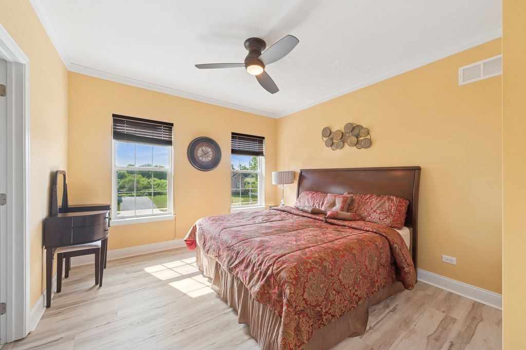Located in the desirable Bowes Creek Country Club, this rarely available model home offers over 4,000 square feet of living space with 5 bedrooms and 4.1 bathrooms. Overlooking the golf course, the home features a well-maintained exterior and great curb appeal-perfect for golf enthusiasts! Inside is a spacious foyer that features a grand staircase. The main level has a functional layout with modern finishes throughout. The kitchen includes stainless steel appliances, granite countertops, and quality cabinetry. There are 2 refrigerators on the property and 1 will be removed from the property. The open-concept living room features tall ceilings, a contemporary fireplace, and plenty of space for entertaining. All bedrooms are generously sized and have updated laminate flooring. The primary suite includes three closets, a private bathroom, and a sitting area that flows into the bedroom. The basement is completely finished with similar modern finishings. It is a great space to entertain and a great storage space! The backyard features a large patio with excellent space for entertaining and beautiful golf course views. Just steps from the course, this home is a great opportunity in a highly sought-after neighborhood. Schedule your showing today this one won't last!