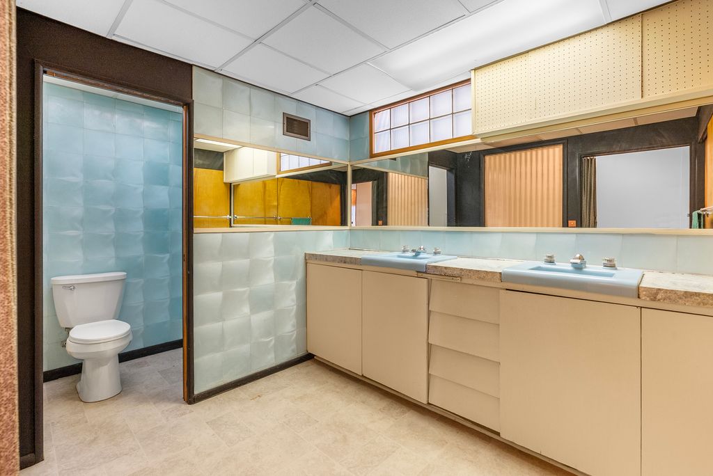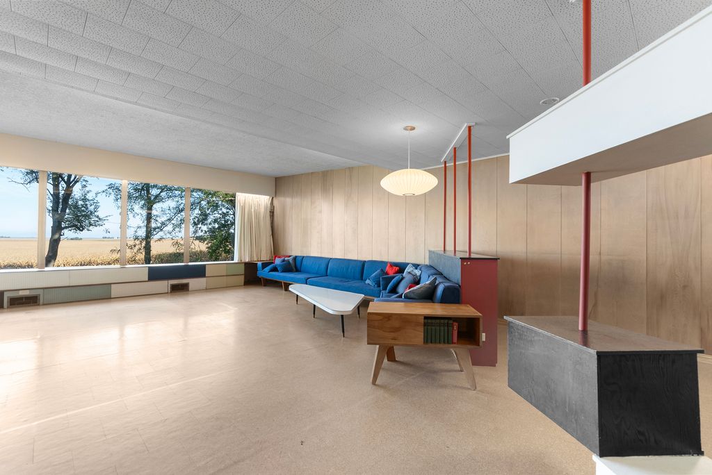 If you're looking for a special mid-century modern getaway, this may be the perfect house! The Griffith family was one of the founders of Ashton, IL, and this house was designed and built in 1955 by Stan Griffith for his own family. Set on a lovely lot on the north edge of town, this delightful MCM walkout ranch is almost completely original, and features many wonderful architectural details like exposed interior brick, expansive windows on the back of the house with "views for miles", a low-voltage lighting system, beautiful wood paneling and matching cabinetry, numerous built-ins, furniture designed & built just for the home, cork floors, Hotpoint cooktop with wall-mounted push button controls and more. Primary bedroom has a nursery off to one side (perfect for a home office) and there's a double bedroom on the main level, too, that could be separated with a wall or room divider to make two separate rooms (each side of the double bedroom has its own door). Main level bathrooms use colorful, innovative materials for extra MCM charm. Walkout basement features a large rec room area, unfinished storage area, two separate half baths, and three more rooms that could be used as bedrooms, offices, storage, hobby rooms, or whatever suits your lifestyle. TONS of storage throughout with closets drawers and cabinets tucked away in all sorts of surprising places - and more closets outside at the far end of the carport that's centered on the semi-circular driveway. There's nothing else like it in Ashton, and it's just a couple hours west of downtown Chicago, making for a perfect - and affordable - weekend getaway. Home & property are being sold as-is as part of an estate.