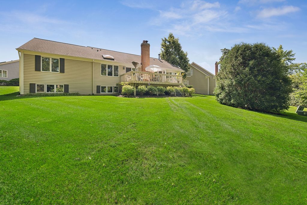 Your next home is this one in Inverness on the Ponds, a highly-desirable, gated community. Lovely 2400 sq. ft. ranch home with a full, finished basement. Kitchen features a fireplace, high- end appliances, granite counter tops, subway tile back splash, beautiful mahogany flooring, undercabinet lighting, white cabinetry with pullout drawers, plenty of pantry space and access to the side deck. An Italian marble mantel on the great room fireplace is stunning, making it the focal point of the room. The open floor plan great room and dining room feature a bay window, dramatic tray ceilings, and access to the large, back deck with mature tree views. In addition to a large, updated first-floor laundry room/mudroom with plenty of storage, conveniently located off the garage, this well-designed home features a main-floor powder room and two spacious main-floor bedrooms. Each bedroom has its own full bathroom. The master bathroom includes a walk-in closet and heated floor. The full English basement includes a large recreation room complete with wet bar and refrigerator, large L-shaped bar with seating for seven plus, powder room, third bedroom with full bathroom, workout room, workshop and large storage areas. Other home features include hot water circulator pump; battery backup sump pump system; new hot water heater, furnace and A/C; heated garage, larger garage; gutter guards and upgraded landscaping. Don't miss this one!