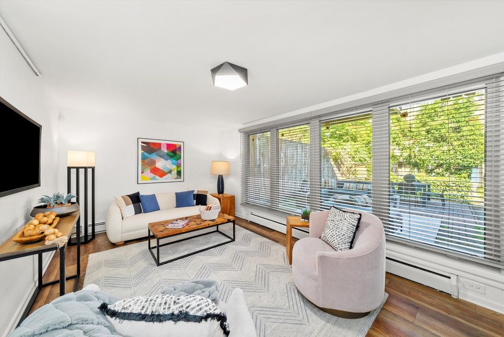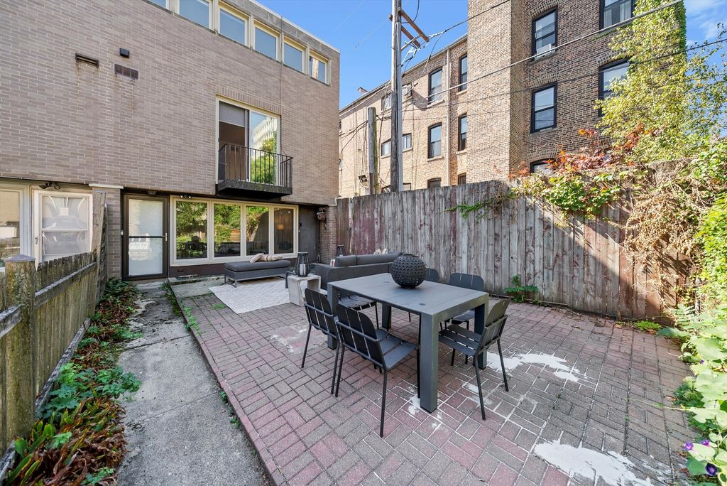 This 4-bedroom, 2-bath Type E end-unit townhome combines thoughtful updates with the original architect's design, offering both character and modern comfort. The 2024 kitchen remodel features custom cabinetry, quartz countertops, and stainless steel appliances, opening seamlessly to a warm and inviting dining area. Oak hardwood floors and the staircase were refinished to highlight their original beauty, while the bathrooms include updated plumbing, fixtures, and tile-plus a reworked lower-level bath with added shower (2019). The versatile lower level includes a spacious family room, guest bedroom, and full bath-perfect for visitors, a home office, or playroom-and opens directly to your private fenced-in rear yard. Abundant closets and built-in shelving provide storage throughout. Additional updates include newer windows (2019), an electrical box replacement (2023), and a roof installed in 2015 with transferable warranty. One deeded parking space and additional guest parking are included. Nestled on a tree-lined cul-de-sac in vibrant Hyde Park, this rare corner unit offers both community charm and city convenience. Just minutes from the University of Chicago, the Museum of Science and Industry, the lakefront, and the dining, shopping, and entertainment along 53rd Street. The Metra station and Trader Joe's are only a 5-minute walk away, making commuting and errands effortless.