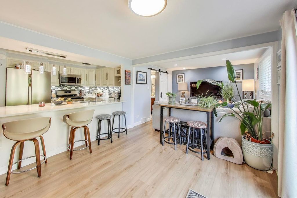 Rarely available!!! Beautiful three story townhome in Crestwood Village complex in award winning New Trier School district !!! High ceilings on the first floor. This great unit offers: Harwood floors throughout the townhome, completely updated kitchen in 2022 with Stainless Steel appliances and huge quartz island countertop. Updated baths, newer bedroom windows, light fixtures, RING doorbell, NEST thermostat, can lights and many more. Beautiful wide patio doors leading to fully fenced large backyard. Crawl space can be used as additional storage. Coated parking 2021. Desirable amenities, shopping, library, parks and transportation are very close.