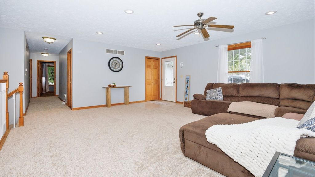 Welcome to this beautifully crafted custom-built 3-bedroom, 2.5-bath home nestled on over half an acre in the charming community of Heyworth. Designed with a unique and functional layout, this home offers both comfort and character throughout. Step inside to find three spacious main-floor bedrooms and two full bathrooms, complemented by a large open loft overlooking the stunning two-story living room. A floor-to-ceiling wood-burning stove creates a cozy centerpiece. The expansive kitchen opens seamlessly to the living area and features a walk-in pantry, abundant cabinetry, and a dining space with sliding doors leading to a large fenced-in backyard - ideal for entertaining, gardening, or play. Car enthusiasts and hobbyists will love the oversized 30x30 heated and insulated two-car garage, complete with a 9-foot door and utility sink for added convenience. Recent updates include: New carpet (2025) Updated landscaping Fenced-in backyard HVAC (2011) Water heater (2012) This property combines modern comfort, unique design, and thoughtful updates - all in a peaceful small-town setting. Don't miss your chance to own this one-of-a-kind home - schedule your showing today!