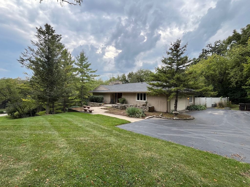 Perched high on nearly two acres in the desirable Tower Lakes community, this one-of-a-kind custom hillside ranch offers privacy, beauty, and year-round vacation living. Surrounded by mature trees, the home's open floor plan welcomes you with a striking three-sided stone fireplace that anchors the living and dining rooms, flowing into an eat-in kitchen with a large pantry, nearby laundry, and access to a charming screened porch. The office or nursery opens to a shared deck with the dining room, while the primary suite is a true retreat featuring floor-to-ceiling windows with serene wooded views, its own private deck overlooking the backyard pool, and a luxurious bath. The lower level extends the home's charm with a spacious family room, play/bar areas with another stone fireplace, sliding doors to a patio, and three additional bedrooms with a full bath. 2 & 1/2 Car Garage w/workshop area. Outdoors, enjoy the privacy of a large inground pool and the unmatched lifestyle of Tower Lakes with walking paths, tennis courts, parks, and lake access for swimming, canoeing & kayaking, and beachside fun. This exceptional home blends natural beauty, thoughtful design, and an unbeatable location-perfect for everyday living or entertaining in every season.