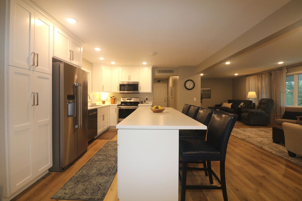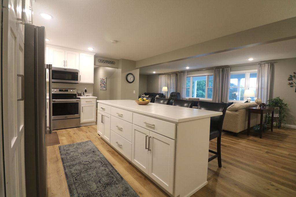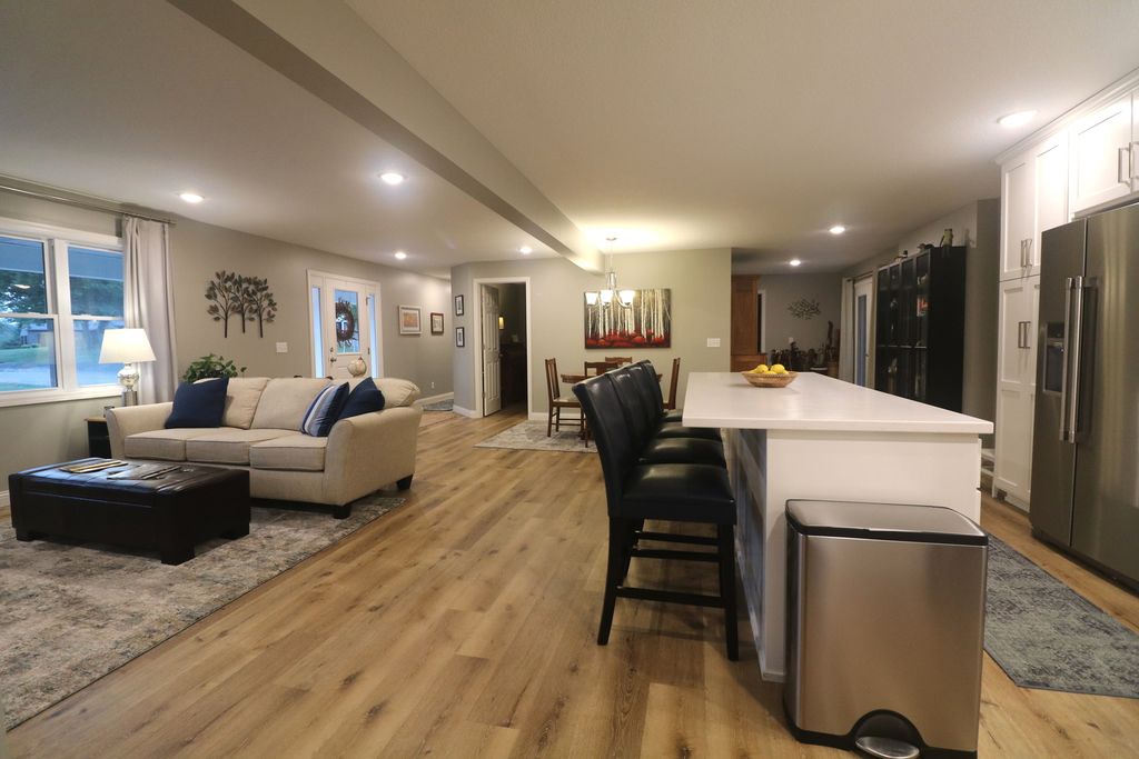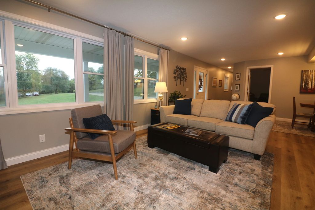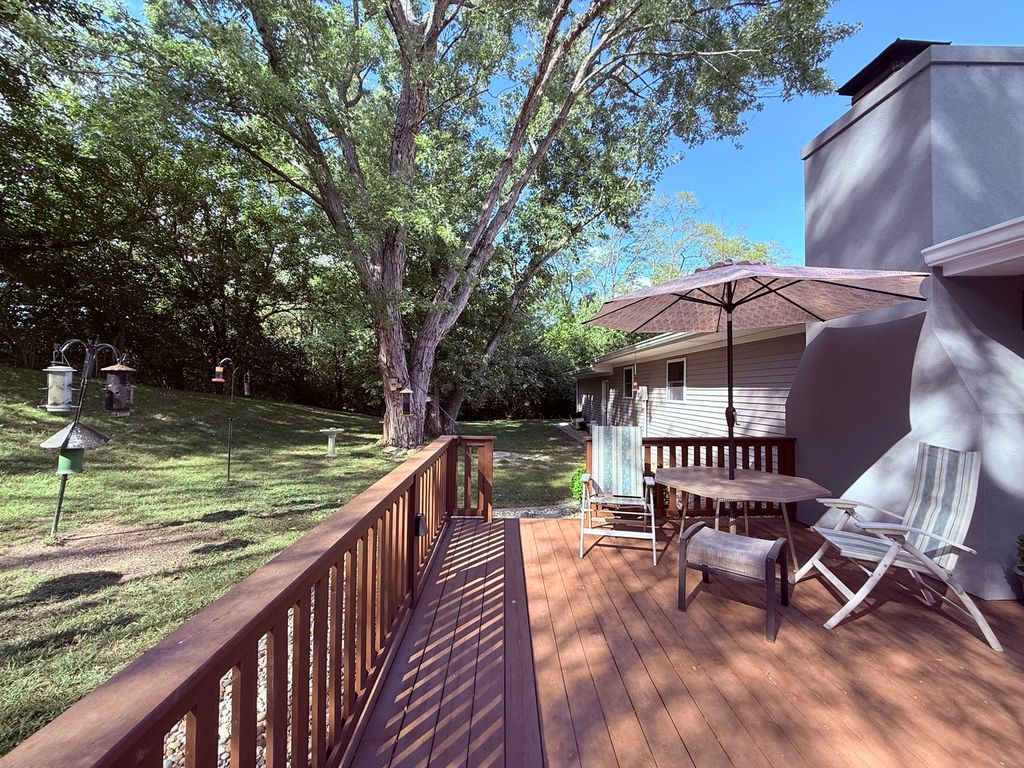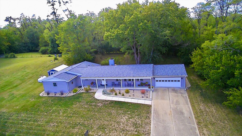 Welcome to this modern, sprawling ranch in a charming country subdivision, perched on a hill and just moments from the beautiful Clinton Country Club. This thoughtfully redesigned home has been taken down to the studs and rebuilt with today's lifestyle in mind-truly move-in ready and maintenance-free for years to come. Step inside to find an open-concept floor plan where walls have been removed to create a bright, inviting living space. At the heart of the home, a large eat-at island anchors the attractive kitchen and seamlessly connects to the spacious dining and living areas. Newer Maytag appliances, Corian countertops, custom light fixtures, and plenty of windows highlight the modern finishes. The primary suite boasts a customized walk-in closet with built-in organizers and a stylish private bath featuring a custom shower door, new mirrors, and elegant fixtures. The second full bath has also been completely remodeled with a fresh tub/shower combo and serves the other two spacious bedrooms. Additionally there is a flex space that could be bedroom #4 or a private study. Two car attached garage provides convenient parking and storage. Additional highlights include: Custom blinds throughout the home, LVP flooring and updated interior & exterior doors, Laundry room with Maytag washer/dryer, utility sink, toilet, and water softener hook-up. Plus new roof, windows, siding, gutters, crawl space insulation, and attic insulation (2023) A brand-new shed for extra storage! Landscaped yard with mature trees and a great backyard deck for entertaining. Updated exterior chimney finish with durable Drivet. Relax on the covered front porch and enjoy the serene hilltop view, or retreat to the backyard for private gatherings. This property blends the charm of small-town living with the convenience of modern design and thoughtful upgrades. Do you love to golf? From this property you can drive your golf cart to the Clinton Country Club right across the highway. Don't miss your chance to own this one-of-a-kind, high-quality remodel in Rural Clinton!