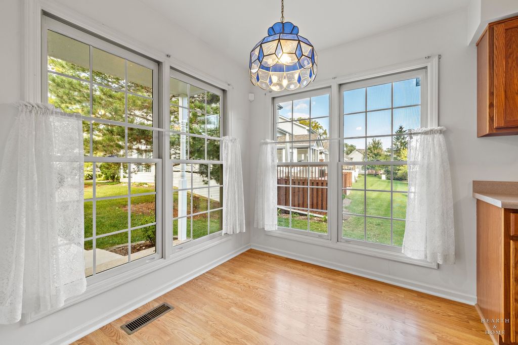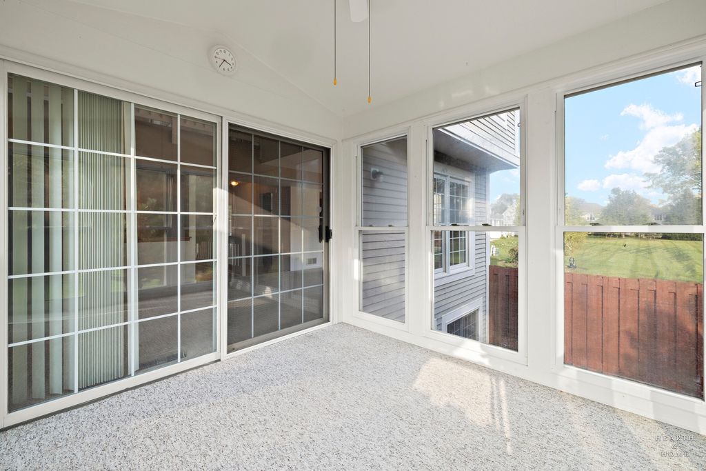 THESE DON'T COME TO MARKET VERY OFTEN, and in fact, it's the first time for this original owner home. Spacious end-unit townhome on a quiet cul-de-sac with gorgeous private views of green space. SUNNY EAT-IN KITCHEN along with dining room that leads to the dramatic vaulted living room space highlighted with a cozy fireplace. Adjacent to the living room is a flex space that could be a family room, den or anything that you want! Sliding glass door leads to a great 3-seasons room that you can enjoy almost year round and stairs from the porch lead down to your own brick paver patio with lovely wooded views. The second floor is highlighted by a flexible loft space for home office|homework nook|hobby hub? Substantial primary suite with walk-in closet, whirlpool tub, and separate shower. The large second bedroom offers an attached bathroom and two closets. Partially finished basement includes a large rec room, bar, and plenty of storage space. Great 2 car attached garage too. IDYLLICALLY LOCATED in central Crystal Lake. Easy to show vacant unit: QUICK CLOSE POSSIBLE!