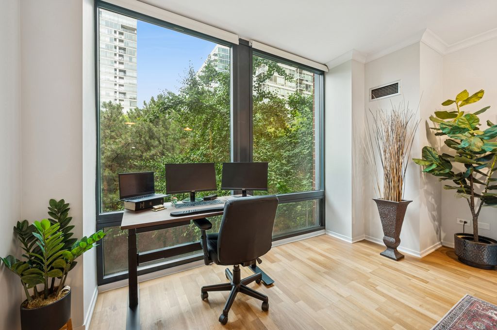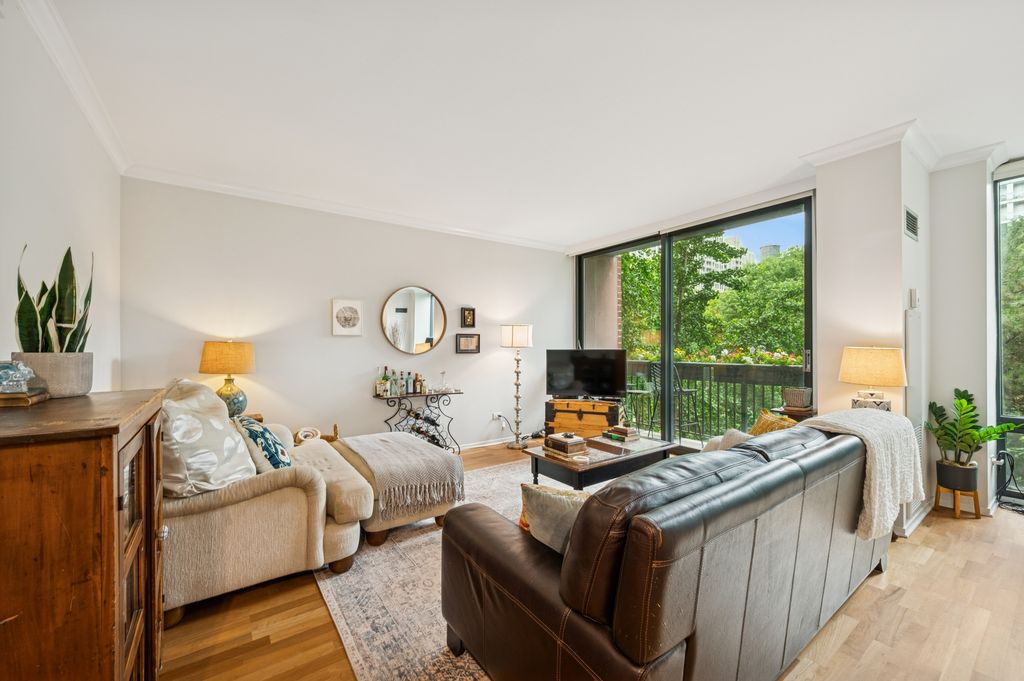 This rarely available 600 N Kingsbury condo checks all the boxes-updated, spacious, and overlooking the park with a river view. With nearly the square footage of a 2-bedroom, this wide and unique 1 bed, 1.5 bath condo offers an open, sun-filled layout, perfect for everyday living and entertaining. The updated kitchen features quartz countertops, stainless appliances, and opens to a generous living and dining space with hardwood floors, a fireplace, and a large balcony facing the beautifully landscaped park, which provides plenty of tree coverage for extra privacy and tranquility. Both bathrooms have been updated, including a newer primary bath with luxurious heated floors. Enjoy the convenience of in-unit laundry, a large walk-in closet, a separate elevator entrance that offers extra privacy, and a dedicated storage locker. Full-amenity building with door staff, fitness center, outdoor pool, and sundeck with grills. Garage parking available for $30,000-prime spot with easy access and set apart from other vehicles. Assessments include heat, A/C, cable, pool, hottub, sundeck, door staff and gym.