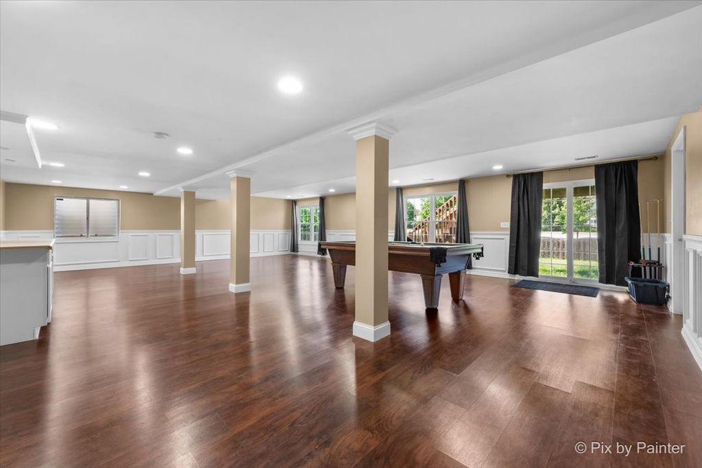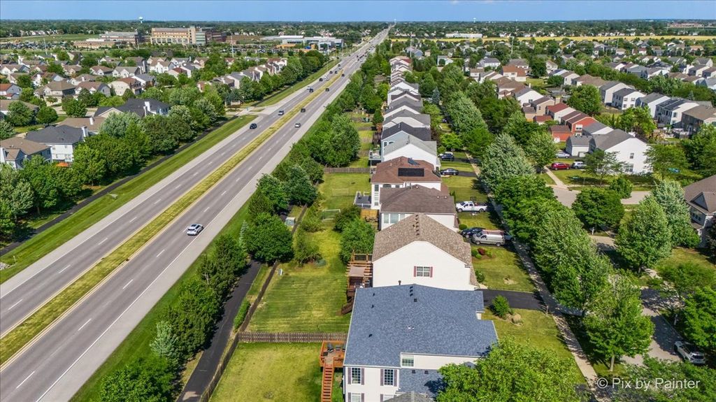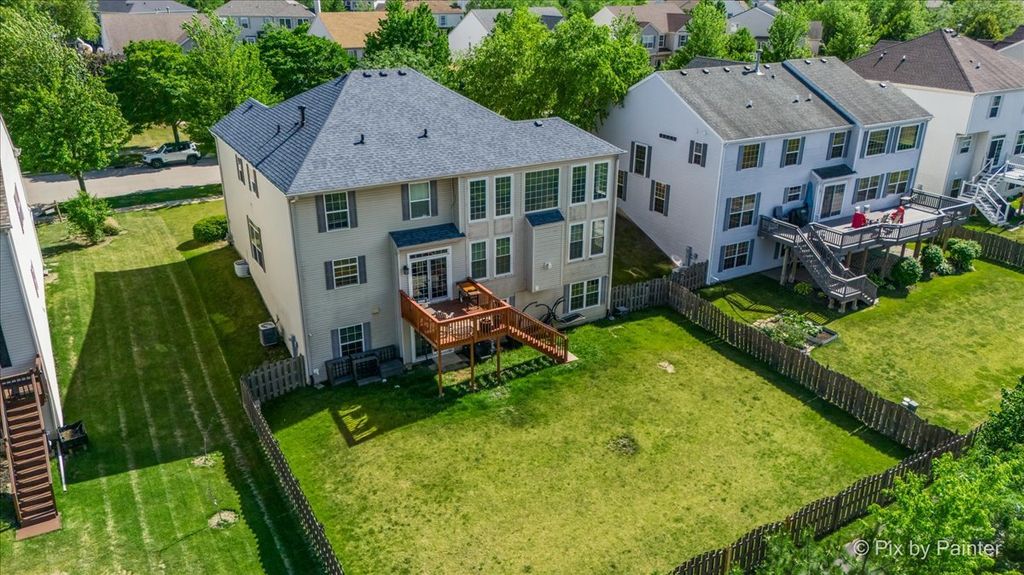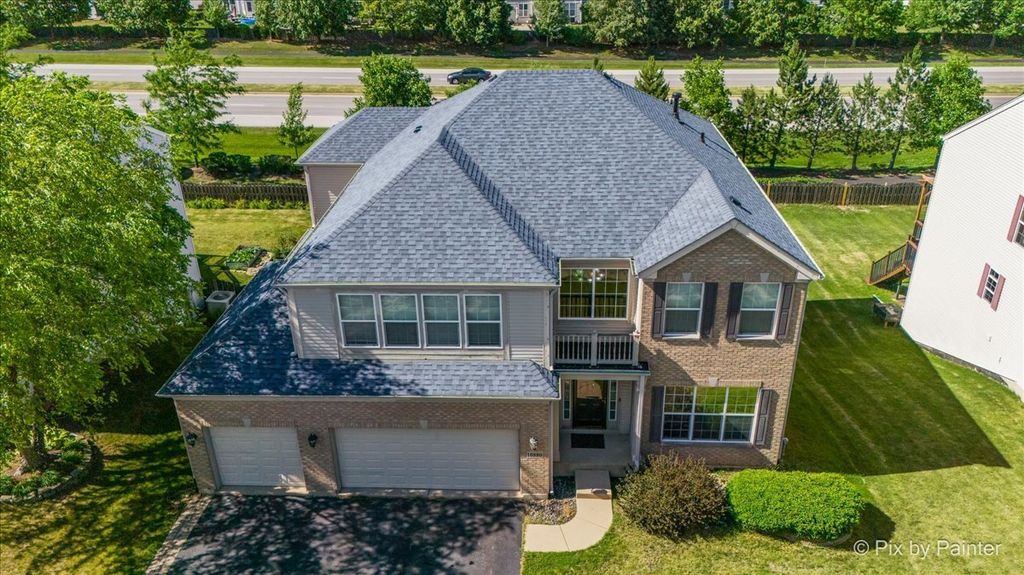 **Welcome to Georgian Place - A Premier Huntley Community!** **District 158's top-rated schools**. Discover this beautiful Santa Fe Model, offering over 4,600 square feet of beautifully designed living space. With 6 bedrooms, 3.2 bathrooms, a finished walkout basement, and a 3-car garage, this home checks all the boxes! Step inside to a grand 2-story foyer filled with natural light from expansive windows, spacious living room and formal dining room. A rare main-floor bedroom with full bath provides flexibility for guests or multigenerational living. The heart of the home is the dramatic 2-story family room, flooded with natural light and perfect for relaxing or entertaining. The kitchen is equipped with 42" cabinets, granite countertops, and stainless steel appliances. A grand staircase with custom wrought iron railings leads to the second level, where you'll find the primary suite featuring tray ceilings, two spacious walk-in closets, and bathroom with double vanities, mirrored sinks, soaking tub and a separate shower. Three additional generously sized bedrooms share a third full bathroom, and a conveniently located laundry room. The finished walkout basement offers even more living space with a large recreation/media room, one additional bedroom (or flexible space) with a half bath currently used as a workout room. Enjoy outdoor living in your private fenced backyard ideal for gatherings or peaceful evenings. Close to everything you need, shopping and dining along Route 47 and Randall Road, easy access to I-90, and a tranquil community with walking paths and ponds. Just steps from Parisek Park and minutes from Huntley Library, downtown Huntley Square, Northwestern Hospital & Fitness Center, Deicke Park, Stingray Bay Pool. ***Recent Updates Include: Roof about 5/6 years old** Half of windows replaced and both Sliding doors (2022) Newly Painted in between 2024/2025, Second floor hallway bathroom updated (2025) Baseboards in family room, living room and dining room (2025), Sellers have a home warranty that is up to June 19, 2028 that will be transferrable to the new owners, pool table in basement stays***